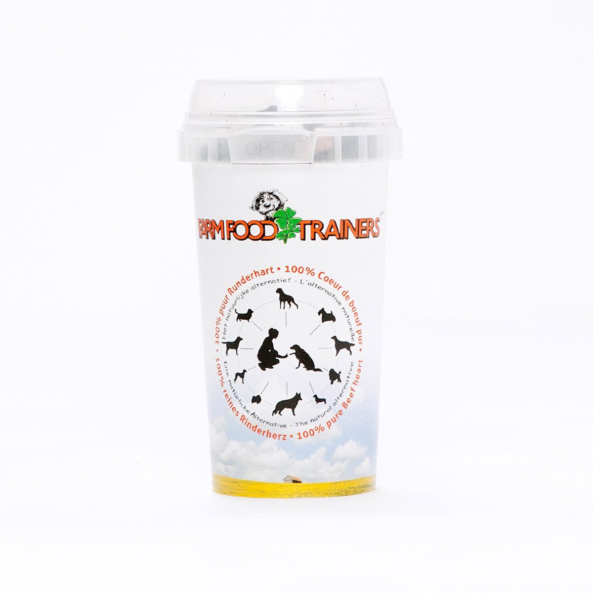 Farm Food Trainers Runderhart zijn verkrijgbaar in hersluitbare busjes, met een inhoud van 90 gram & bussen met een inhoud van 333 gram.