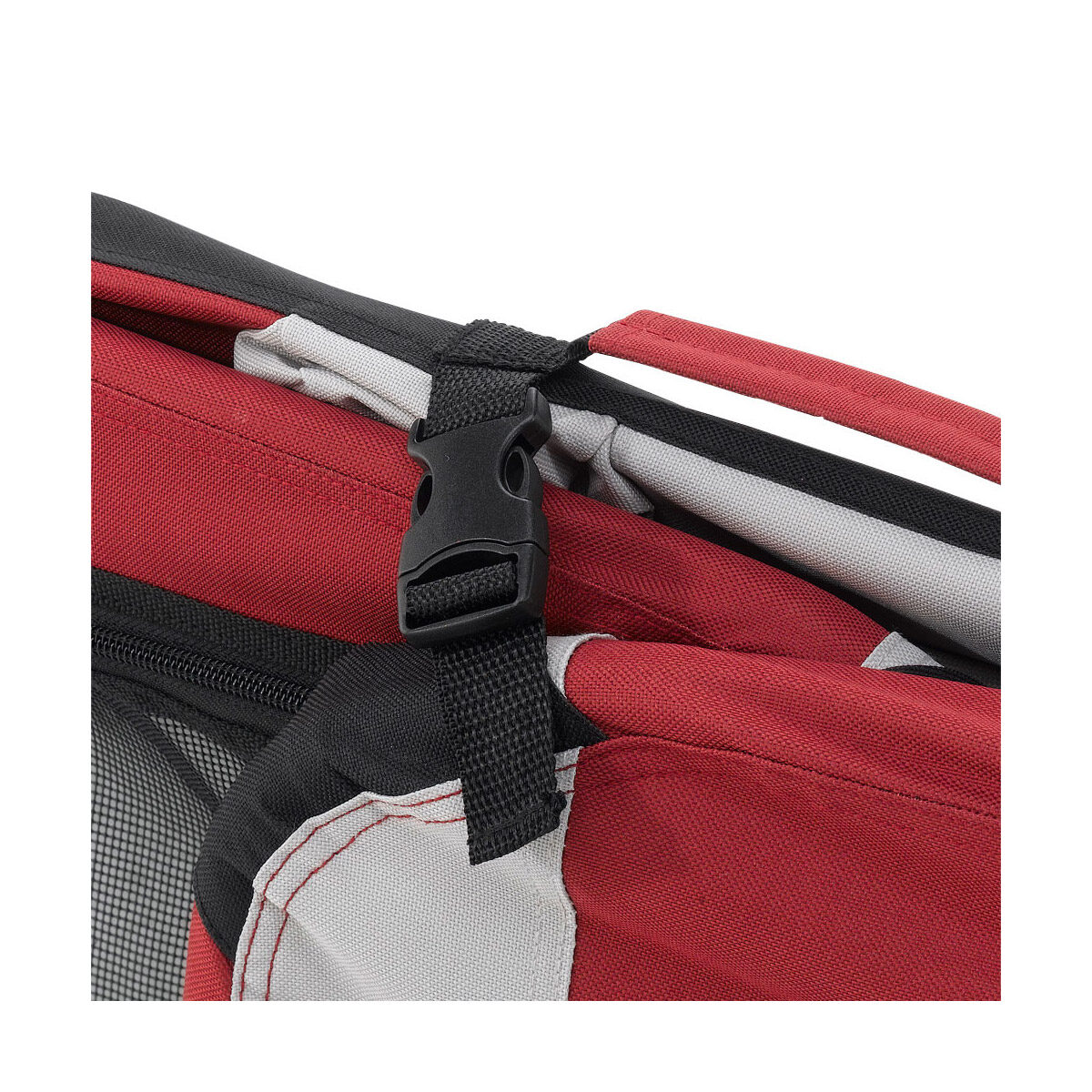 Deze hondenbox is praktisch en heeft drie ramen aan de zijkanten, bedekt met een nylon net, om ervoor te zorgen dat er genoeg ventilatie en licht binnen is. Indien nodig, bijvoorbeeld wanneer op reis, kunnen de ramen dichtgedaan worden met rolluiken. De ingang, welke ook is voorzien van een rolluik, is ontworpen om jouw hond makkelijke toegang te bieden. Holiday heeft handige zakken waarin je bijvoorbeeld een fles water of jouw hond zijn favoriete biscuits of droogvoer kan stoppen. Hondenbox neemt wanneer opgevouwen weinig ruimte in beslag. De opgevouwen hondenbox is ook uitgerust met nylon handgrepen die je de mogelijkheid geven om de hondenbox met extreem gemak te dragen.