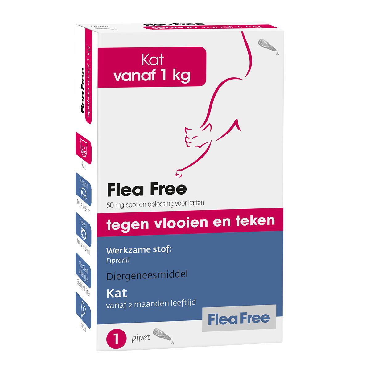 Flea Free spot-on is een pipet met de werkzame stof Fipronil. Deze vlooienpipetten hebben dezelfde werking als Frontline spot-on. Na toediening van deze handig drop-stop pipet is je hond of kat beschermd tegen vlooien (8 weken bij honden en 5 weken bij katten) en beschermd tegen teken (tot 4 weken bij honden en tot 2 weken bij katten). De werkzame stof doodt binnen 24 uur de aanwezige vlooien en binnen 48 uur de aanwezige teken.