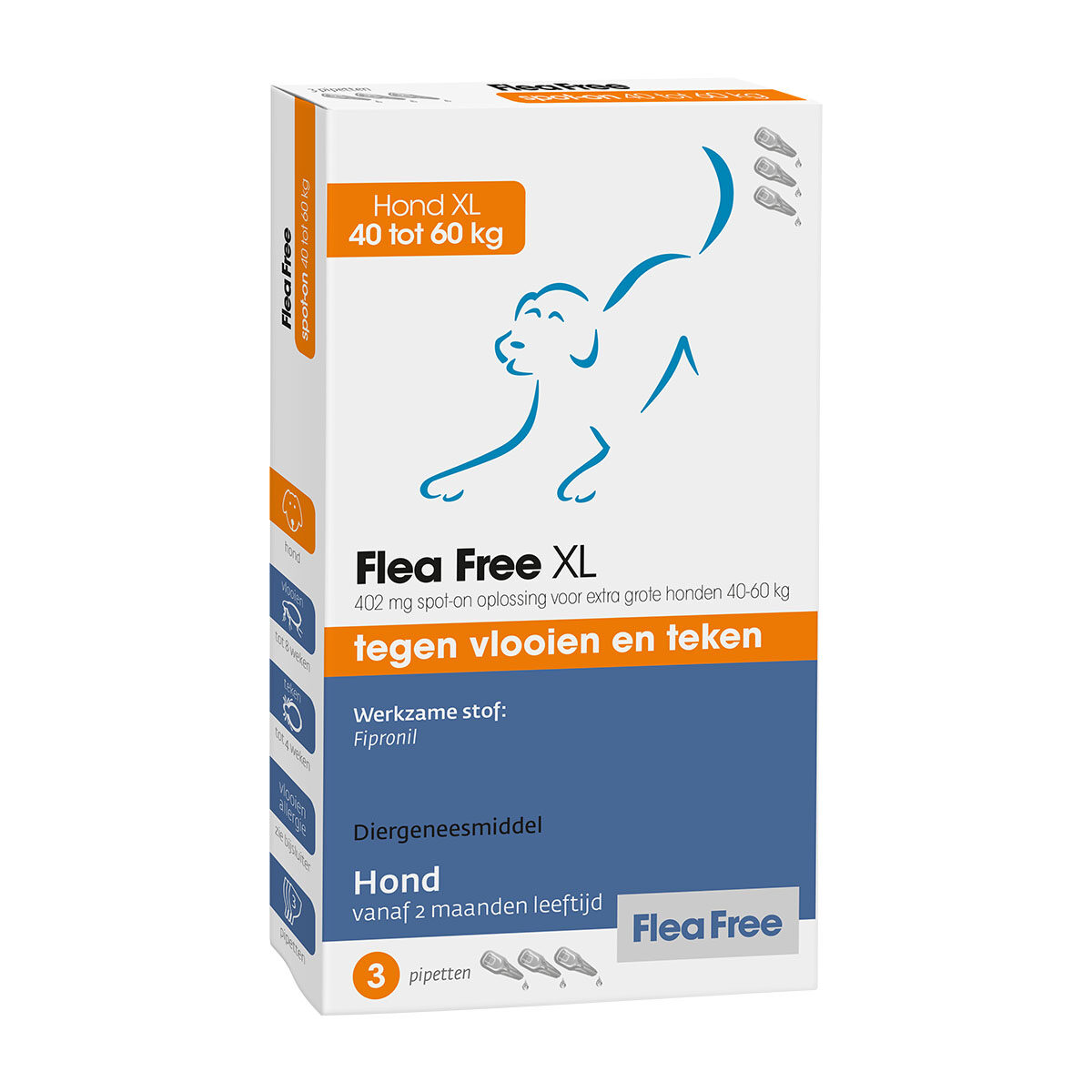| Vanaf 60 kg | 2 Pipetten Flea Free spot-on Hond L |