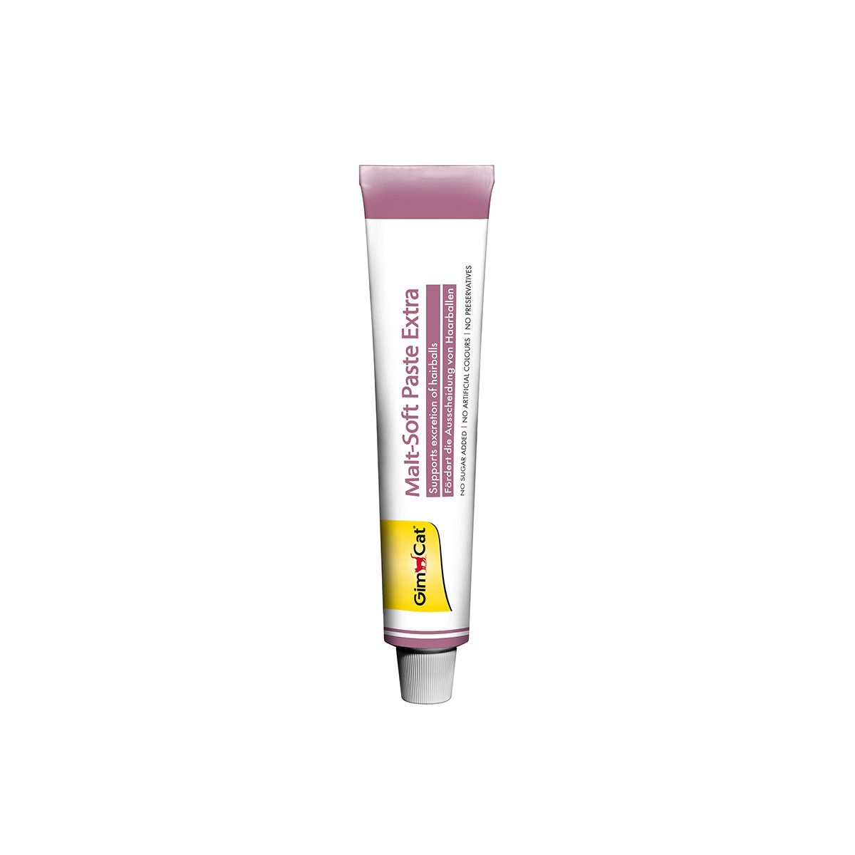 GimCat Pasta Malt-Soft Extra 100 gr. GimCat Malt-Soft Pasta Extra bevat natuurzuivere, aromatische mout en plantaardige olie. In combinatie met voedingsvezels stimuleert Malt-Soft Extra de darmactiviteit en bevordert zo de natuurlijke uitscheiding van ingeslikte haren en onverteerbare bestanddelen. Bovendien worden spijsverteringsstoornissen door de vorming van haarballen voorkomen en de opgenomen beta-glucanen werken preventief tegen ontstekingen in het maag-darmstelsel.