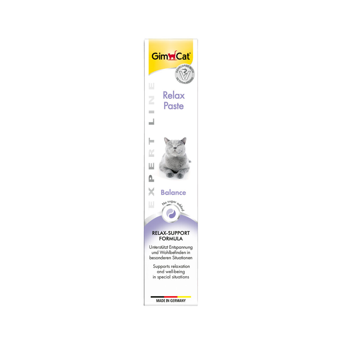 Met de GimCat Relax Pasta ondersteun je je kat zijn of haar welzijn. De pasta draagt bij aan het verminderen van nervositeit, opwinding of angst en de eventuele bijwerkingen daarvan op de gezondheid van jouw kat. Een simpel bezoekje aan de dierenarts, een nieuwe gezinssituatie of een verhuizing kan bij een kat zorgen voor nerveus en angstig gedrag. Katten kunnen dit op verschillende manieren uiten, waaronder het krabben aan meubels of plassen in huis. De GimCat Relax Pasta werkt kalmerend en bevordert de slaap in plaats van de angst. In deze pasta zitten onder andere l-trypofaan, sint-janskruid en bèta-glucaan verwerkt. L-trypofaan stimuleert het aanmaken van serotonine, ofwel het gelukshormoon. Het sint-janskruid en de bète-glucanen dragen bij aan een ontspannend gevoel.