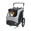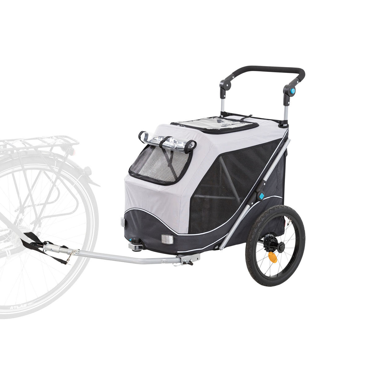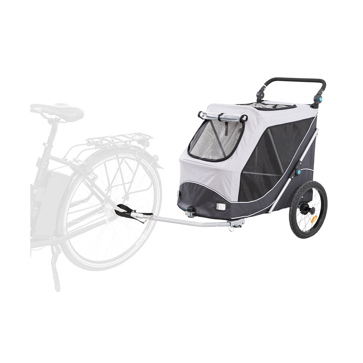 Met een praktisch beveiligingsmechanisme maak je de kar vervolgens vast aan je fiets. Je hond kan via de achterdeur in de fietskar stappen. Dankzij de geïntegreerde korthouder zorg je ervoor dat je hond in de kar blijft zitten, ook al is het deurtje open. De fietskar is tevens opvouwbaar, zo kan je deze eenvoudig meenemen in de auto.