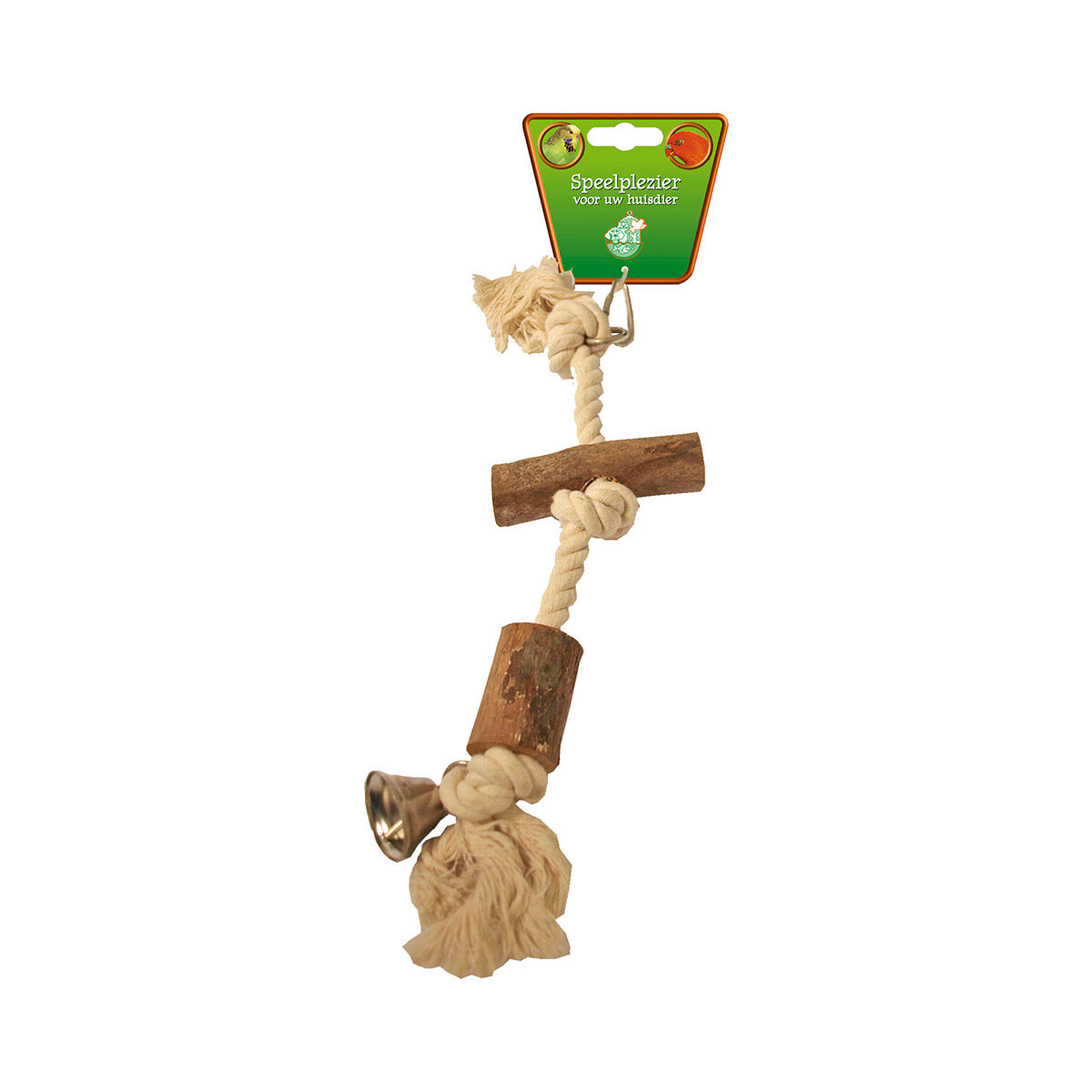 Houten Vogelspeelgoed 2x Klos Met Touw-en-Bel 35 cm. Op zoek naar houten vogelspeelgoed? Zoek dan niet verder dan de Houten Vogelspeelgoed 2x Klos Met Touw en Bel 35 cm. Dit mooie houten vogelspeelgoed bevat 2 klossen die vast zitten aan een stevig touw. Onderaan zit een leuk en vrolijk belletje.