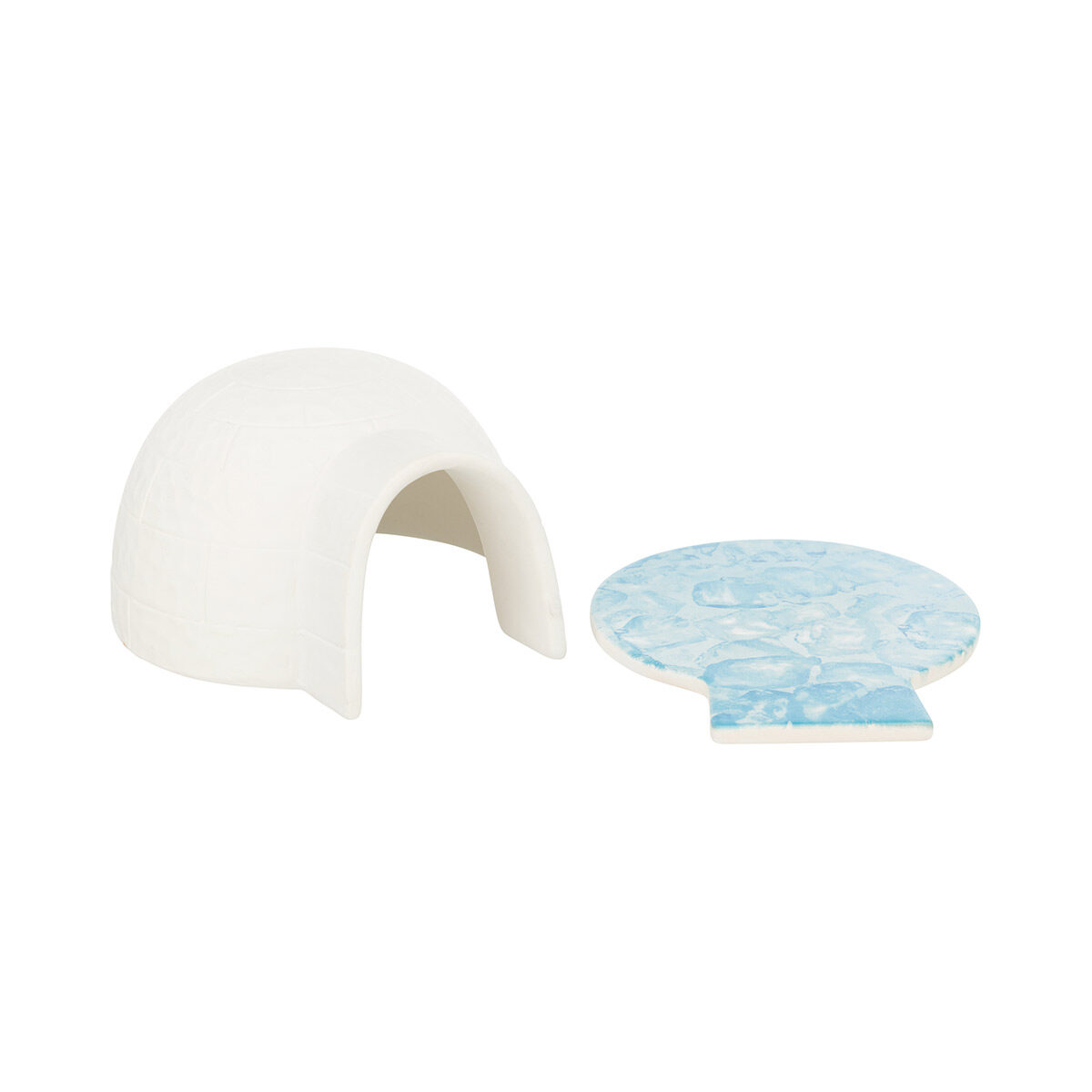De iglo bestaat uit 2 losse delen waardoor je de bodemplaat afzonderlijk in de koelkast kan laten koelen. De koelplaat is van keramiek gemaakt en gelakt. Hierdoor is de koelplaat eenvoudig met een doekje schoon te maken. De onderkant heeft rubberen voetjes zodat de koelplaat slipvast is.