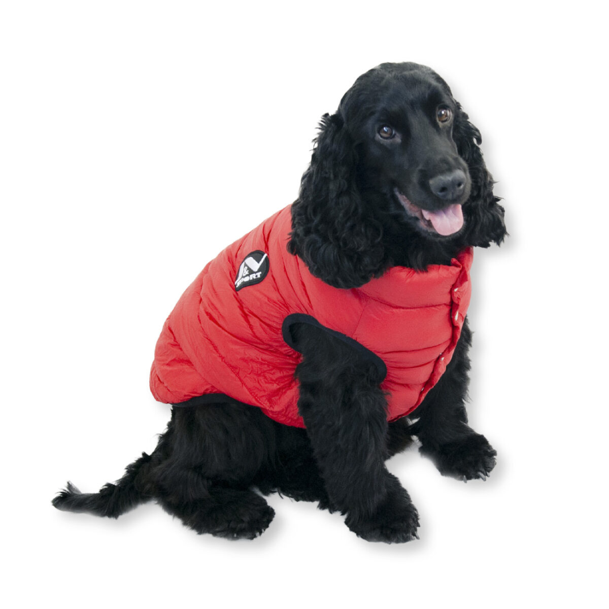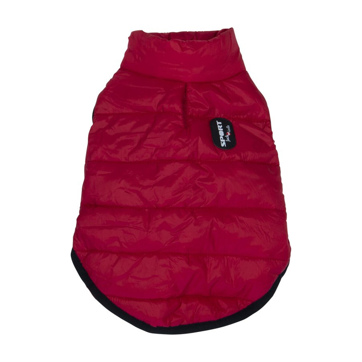 Jack and Vanilla Sportjas Rood-M 35cm. Warme en winddichte jas voor honden. Gemakkelijk aan en uit te doen dankzij de drukknoppen op de borst. De elastieken aan de taille en voorpoten zorgen voor een goede afsluiting en houden de wind tegen. Deze jas heeft een handig opbergzakje en is gemaakt van 100% nylon.