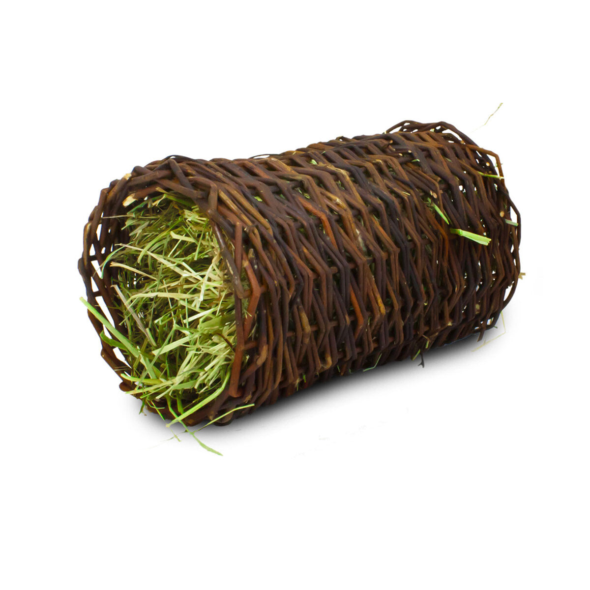 De JR Farm Wilgen-Hooitunnel is heerlijk en gezond snackspeelgoed voor jouw konijn of knager. De tunnel is gemaakt van 70% wilg en 30% bergweidehooi en is daardoor volledig eetbaar. Als het frisse en knapperige hooi door jouw huisdier is opgegeten, dan kan hij de hooitunnel als schuilplaats gebruiken. Ook aan de hooitunnel zelf kan hij nog knabbelen.