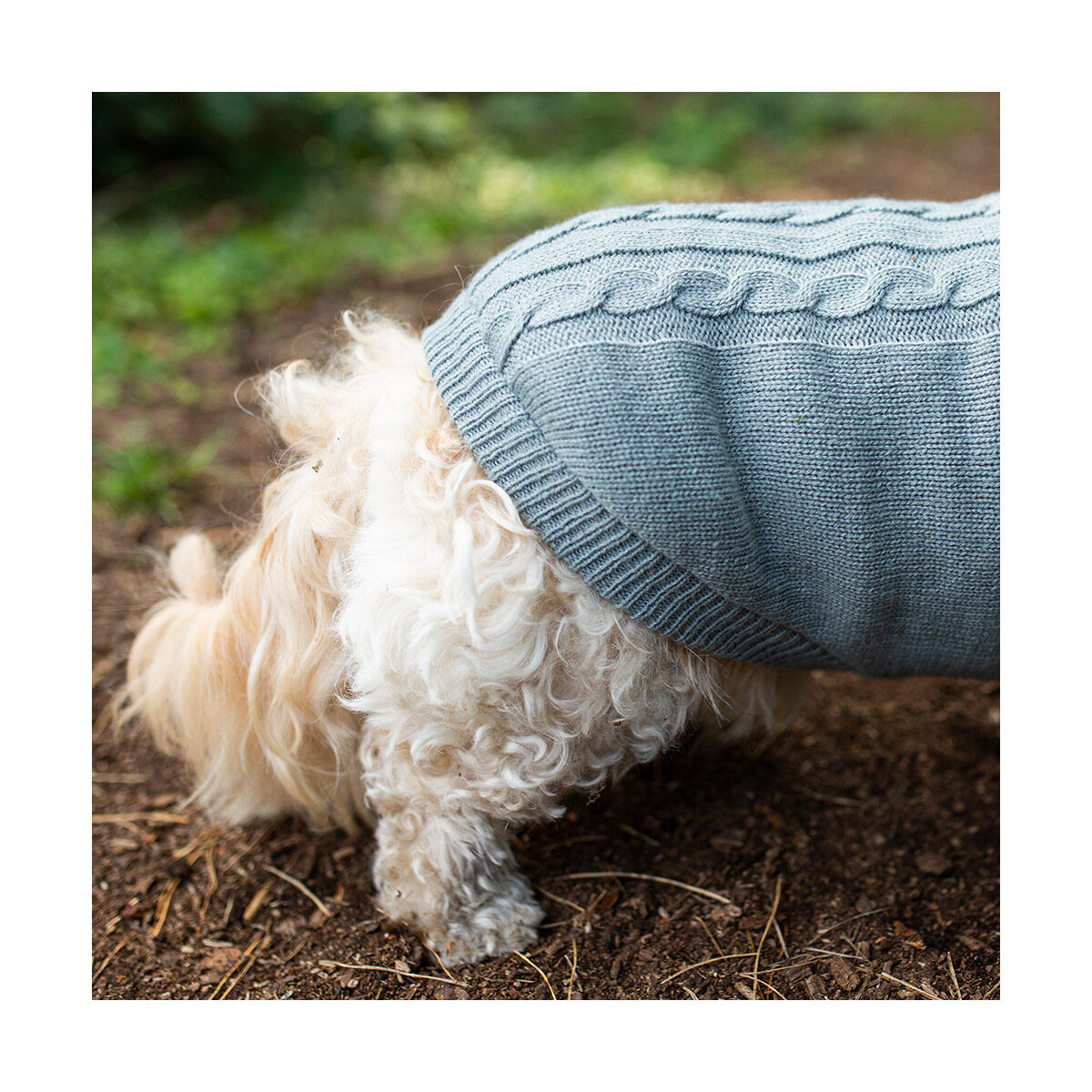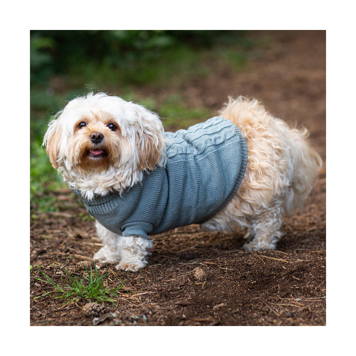 Kabeltrui Hond 30 cm Grijs. Deze kabeltrui is een mooie, warme wintertrui voor je trouwe viervoeter. Deze trui is gemaakt van duurzaam wol en kan tijdens de koude herfst- en wintermaanden ervoor zorgen dat je hondje het lekker warm heeft.