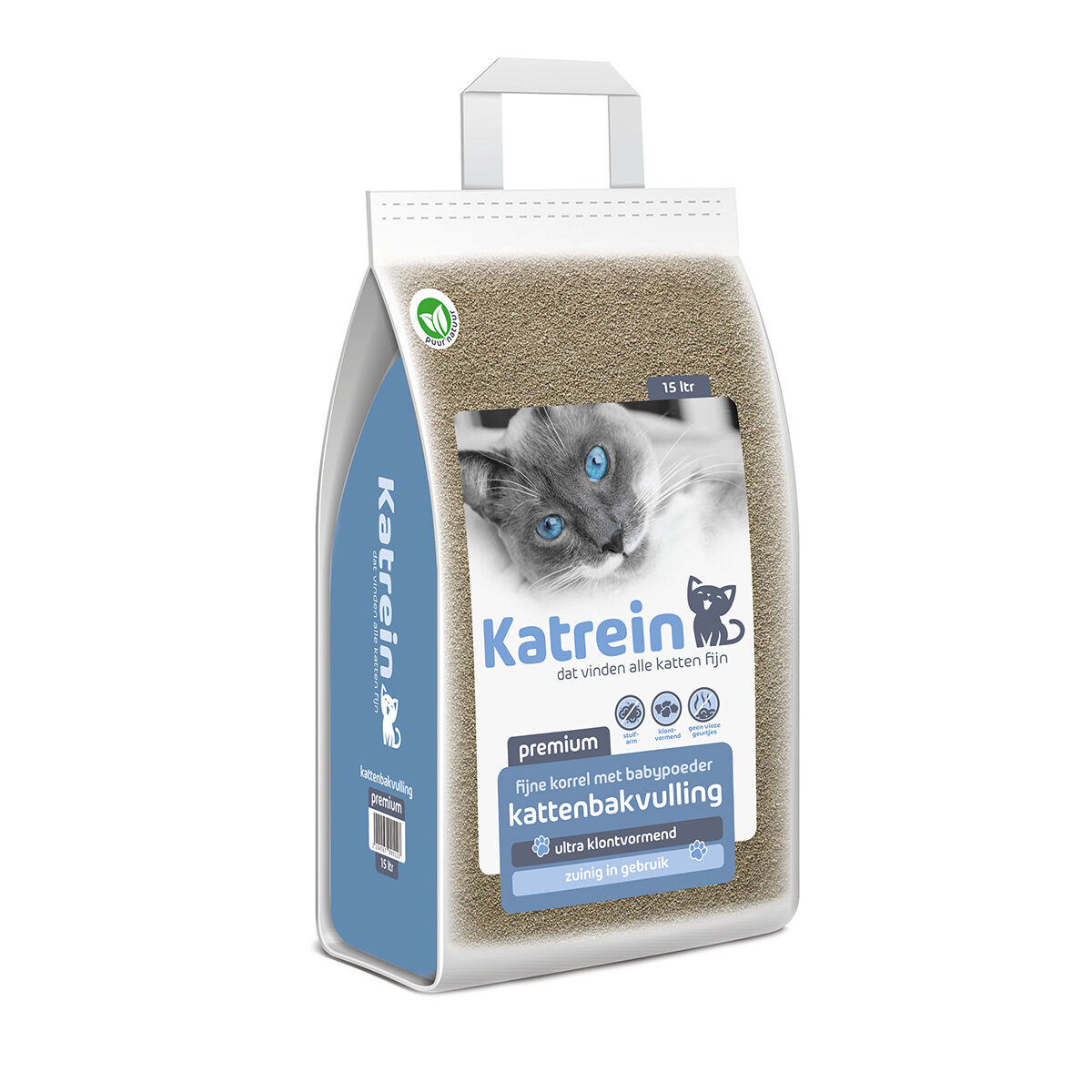 Katrein premium kattenbakvulling met babypoedergeur is een klontvormende, stuifarme, zeer goed absorberende kattenbakvulling. De fijne structuur van de korrels zorgt ervoor dat urine razendsnel wordt opgenomen. Zo ontstaan compacte klontjes die onaangename geurtjes direct inkapselen. De korrels bestaan uit 100% natuurlijke, minerale klei (bentoniet) met de geur van babypoeder dat zorgt voor een aangename geur rondom de kattenbak.