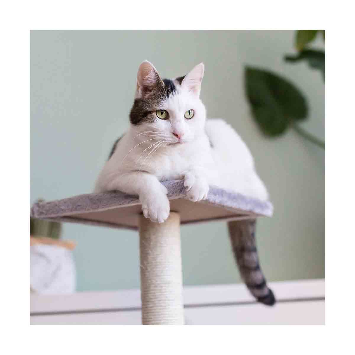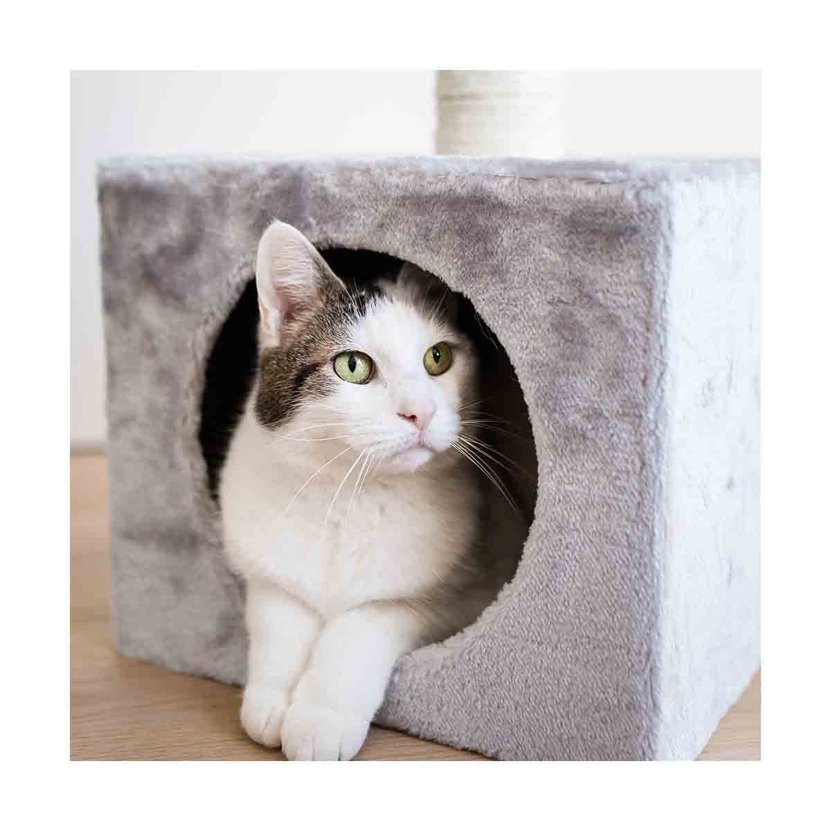 Klimmeubel Diabolo 57cm Beige. Klimmeubel Diabolo is een kattenhuis met een krabpaal die is omweven met sisal, en waarop een pluche plateau komt. Het meubel is maximaal 57 cm hoog en is multi-functioneel: je kat kan er in/mee spelen, krabben en slapen. Klimmeubel Diabolo is leverbaar in zes verschillende kleuren: