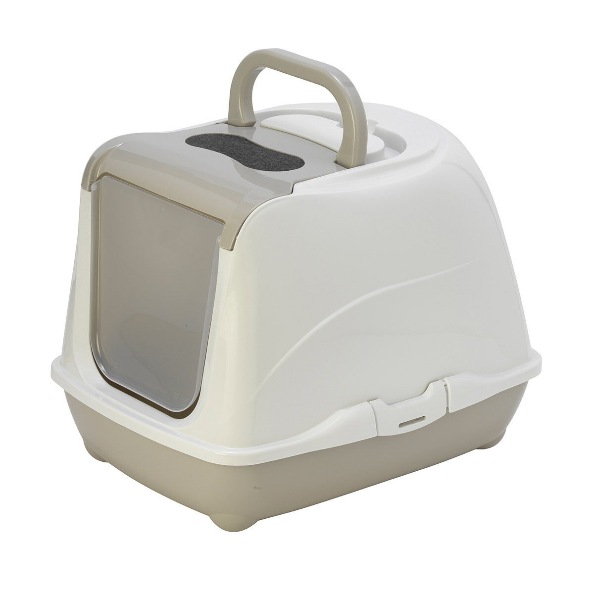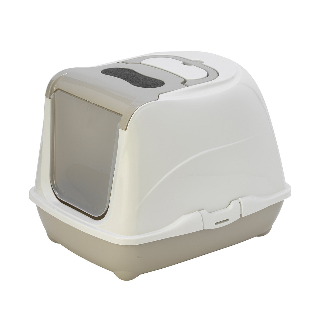 Moderna Kattentoilet Flip Cat Large Warmgrijs. De Flip Cat Large kattentoilet is een gesloten kattenbak met een kap. Deze kap biedt jouw kat wat extra privacy. Het bovenste deel van deze kattenbak kun je eenvoudig openklappen zodat je de bak makkelijk kunt schoonmaken. Het filter in de bovenkap houdt nare luchtjes tegen.