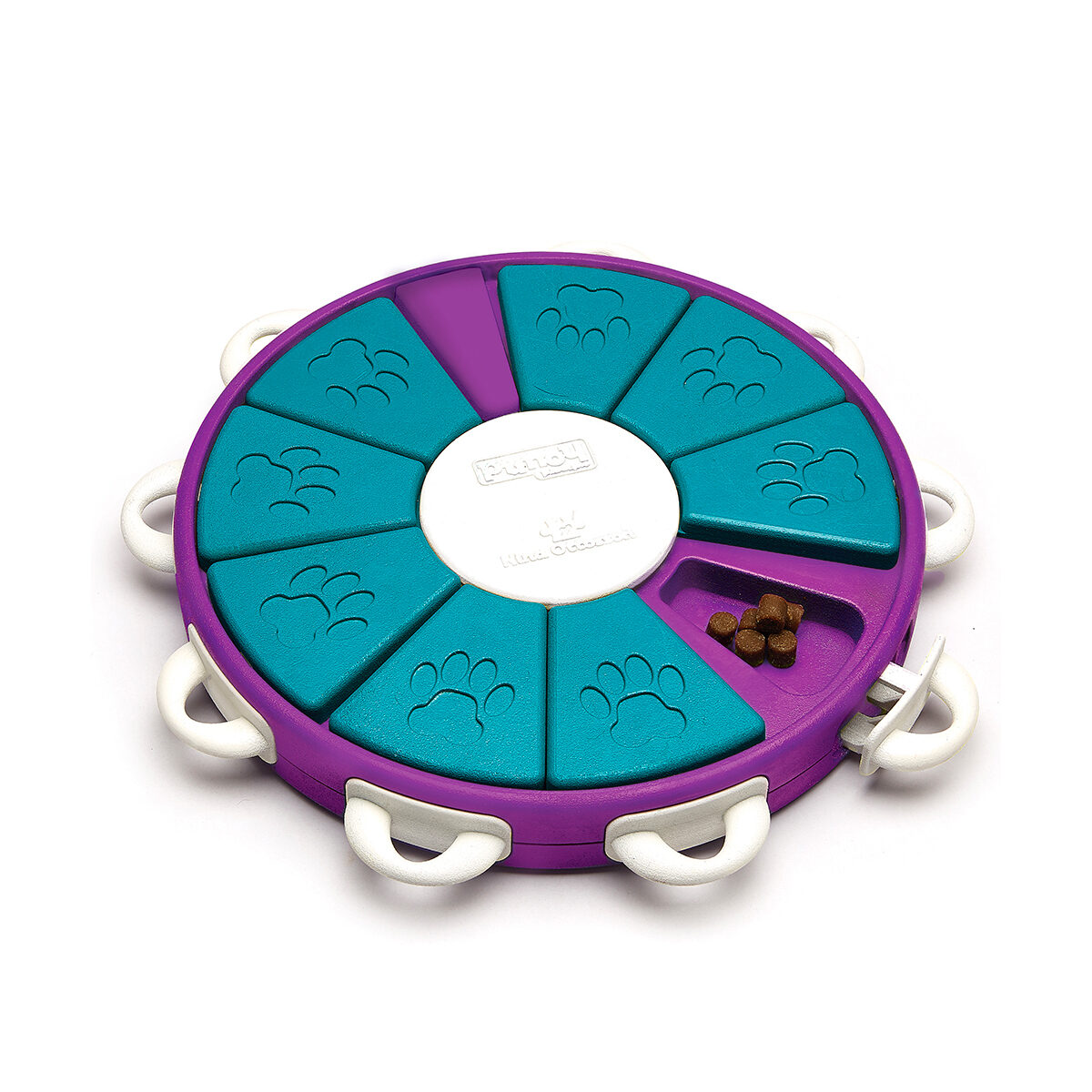 Nina Ottosson Dog Twister Denkspeelgoed Hond ⌀26 cm. Met de Dog Twister wordt je hond uitgedaagd om snoepjes te vinden door de schijven, in de vorm van taartpunten, in verschillende richtingen in het rond te schuiven.