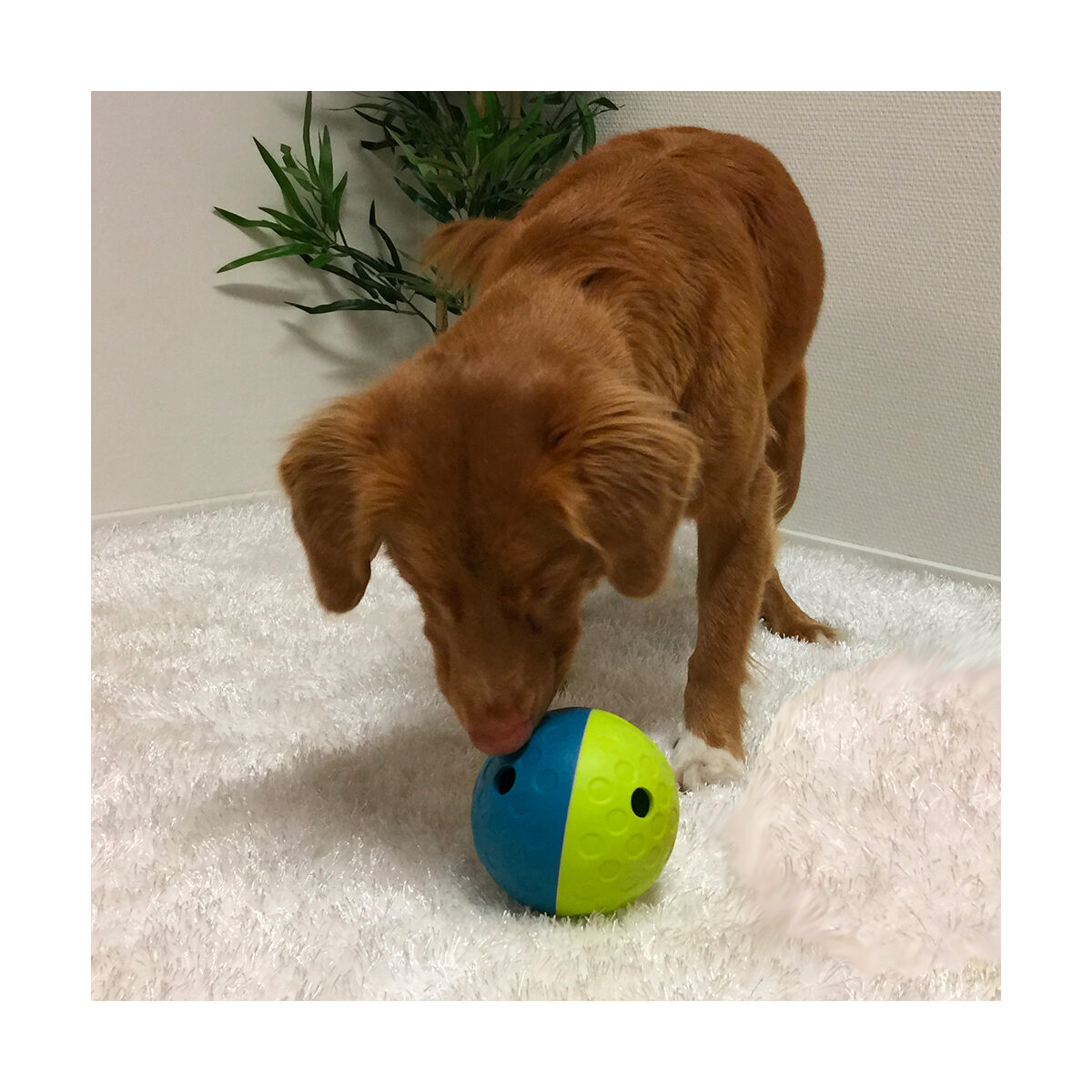 Nina Ottosson Treat Tumble Denkspeelgoed Hond ⌀10,5 cm Small. De Treat Tumble van Nina Ottosson is een leuke bal om huisdieren te belonen en te trainen. De bal kan gevuld worden met iets lekkers om zo jouw hond actief bezig te houden. Door honden op deze manier te vermaken, vervelen ze zich niet en kunnen ze zich helemaal uitleven. De Treat Tumble stimuleert de hond mentaal om problemen op te lossen. Daarnaast zorgt deze bal voor beweging doordat de bal alle kanten op gaat rollen. Dit spel kan zowel buiten als binnen een leuke bezigheid zijn voor honden. De moeilijkheidsgraad is 1 en is ideaal om jouw hond te laten wennen aan spellen en puzzels. Dit speelgoed is geschikt voor iedere hond, ongeacht leeftijd, ras of grootte.