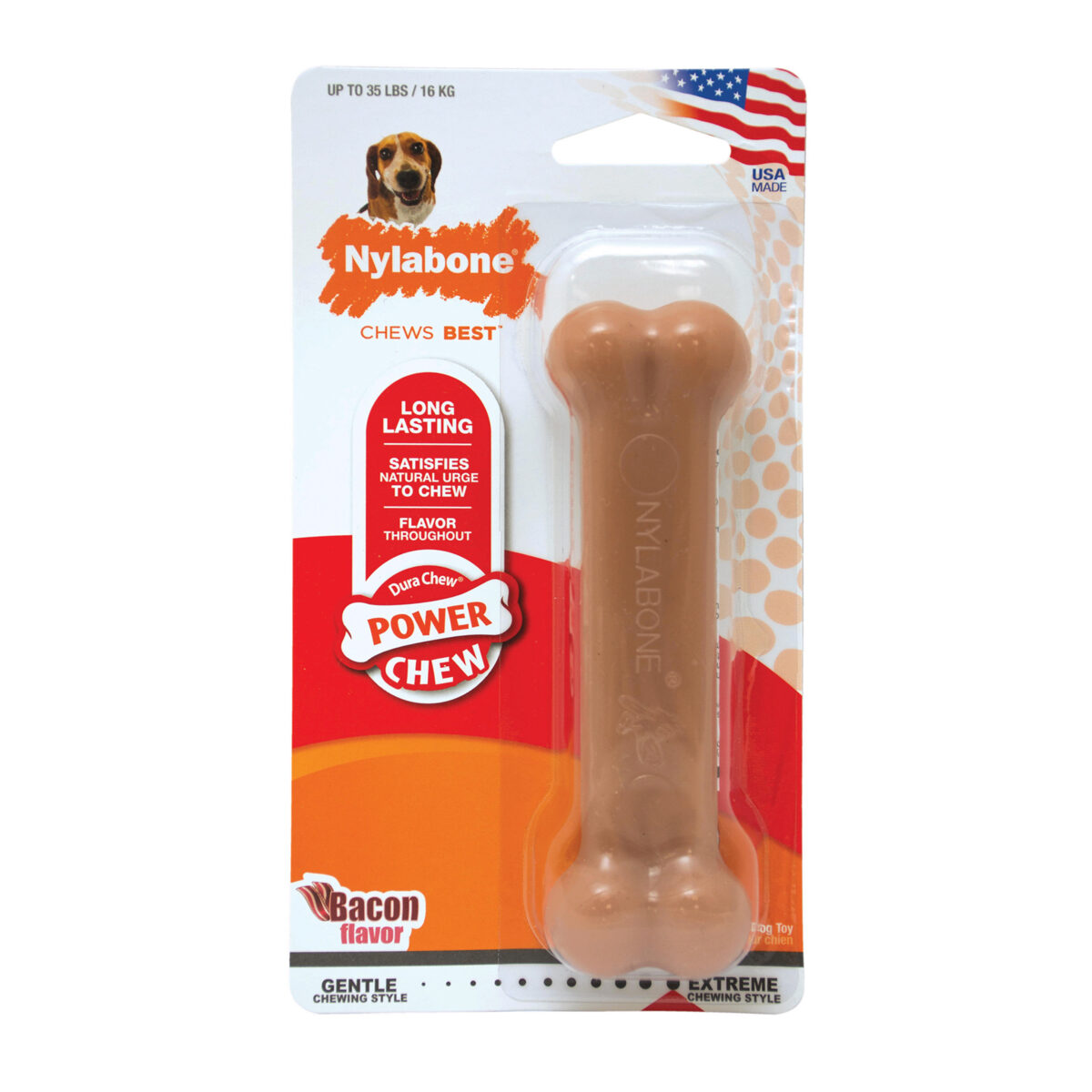 De Nylabone Durable Bone Bacon Hondenkluif tot 16kg heeft een baconsmaak en is verkrijgbaar voor honden tot 16 kg.