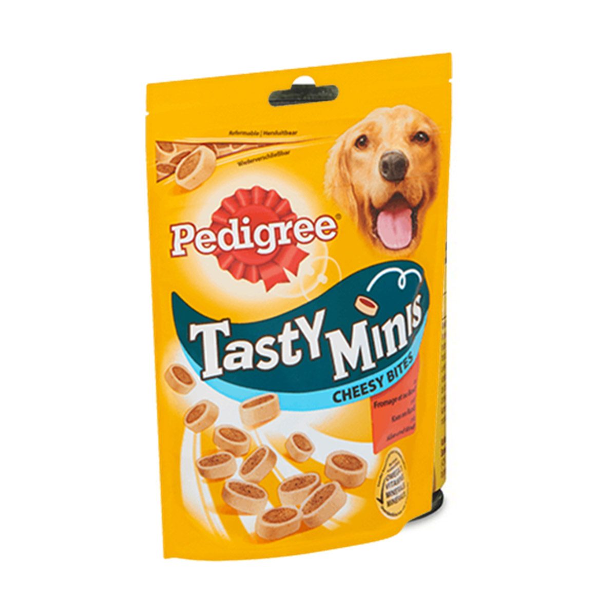 Pedigree Tasty Minis Cheesy Bites hebben een unieke kaas smaak, ze zijn klein en zacht. Ideaal voor tijdens de vele wandelingen met je hond. Pedigree Cheesy Bites kan als beloning gegeven worden tijdens trainingsmomenten of tijdens de vele wandelingen met je hond. Het is een heerlijk klein tussendoortje waarvan de hond er meerdere per dag mag hebben.