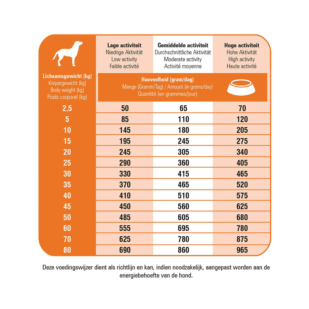 Prins Fit Selection Chicken & Rice kan droog gegeven worden. Bereiding is niet nodig. Zorg dat er altijd vers drinkwater op kamertemperatuur ter beschikking staat. Verdeel de dag portie Fit Selection Chicken & Rice over minimaal twee maaltijden per dag. Wil je jouw hond eens extra verwennen, bied dan één of meerdere dagen achtereen Prins TotalCare of Prins NatureCare aan. Dit zijn gezonde en natuurlijke vleesmaaltijden voor je hond. Overige bijvoeding wordt afgeraden.