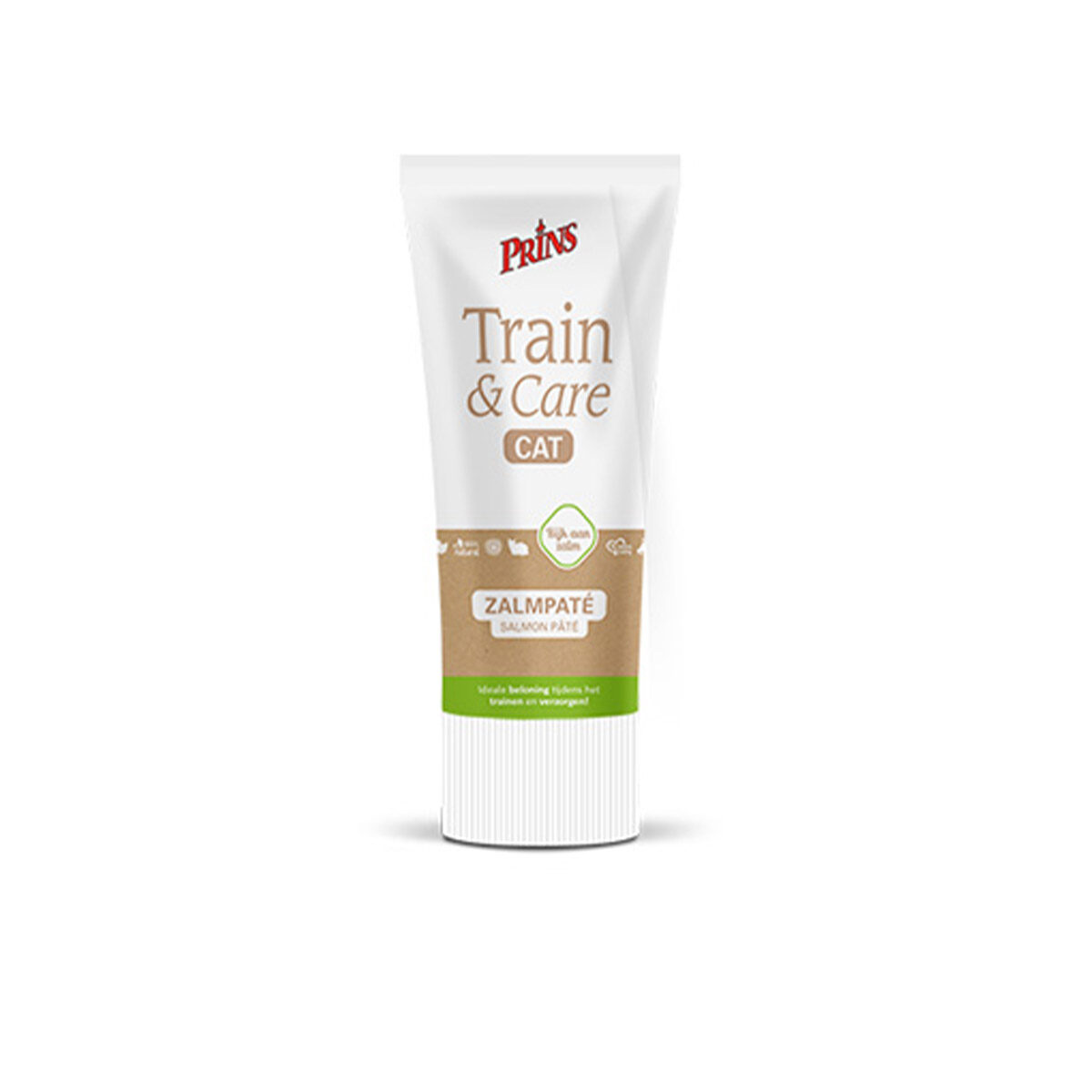 Prins Play & Care Kattensnack Zalm 75gr. Prins Play & Care Salmon is rijk aan verse zalm. Deze beloningscrème is niet alleen heel erg lekker, maar ook nog eens tarwe(gluten)vrij en bevat uitsluitend zalm als dierlijke eiwitbron. De beloningstube bevat als extra ingrediënt taurine, een essentieel aminozuur dat een belangrijke bouwsteen voor het lichaam vormt. Katten kunnen in tegenstelling tot honden niet zelf taurine in hun lichaam aanmaken. Het moet daarom speciaal aan hun eten worden toegevoegd. De tube maakt het makkelijk te doseren en de beloning kan rechtstreeks uit de tube worden gegeven. Deze snack is 100% natuurlijk, vrij van geur-, kleur- en smaakstoffen en proefdiervrij.
