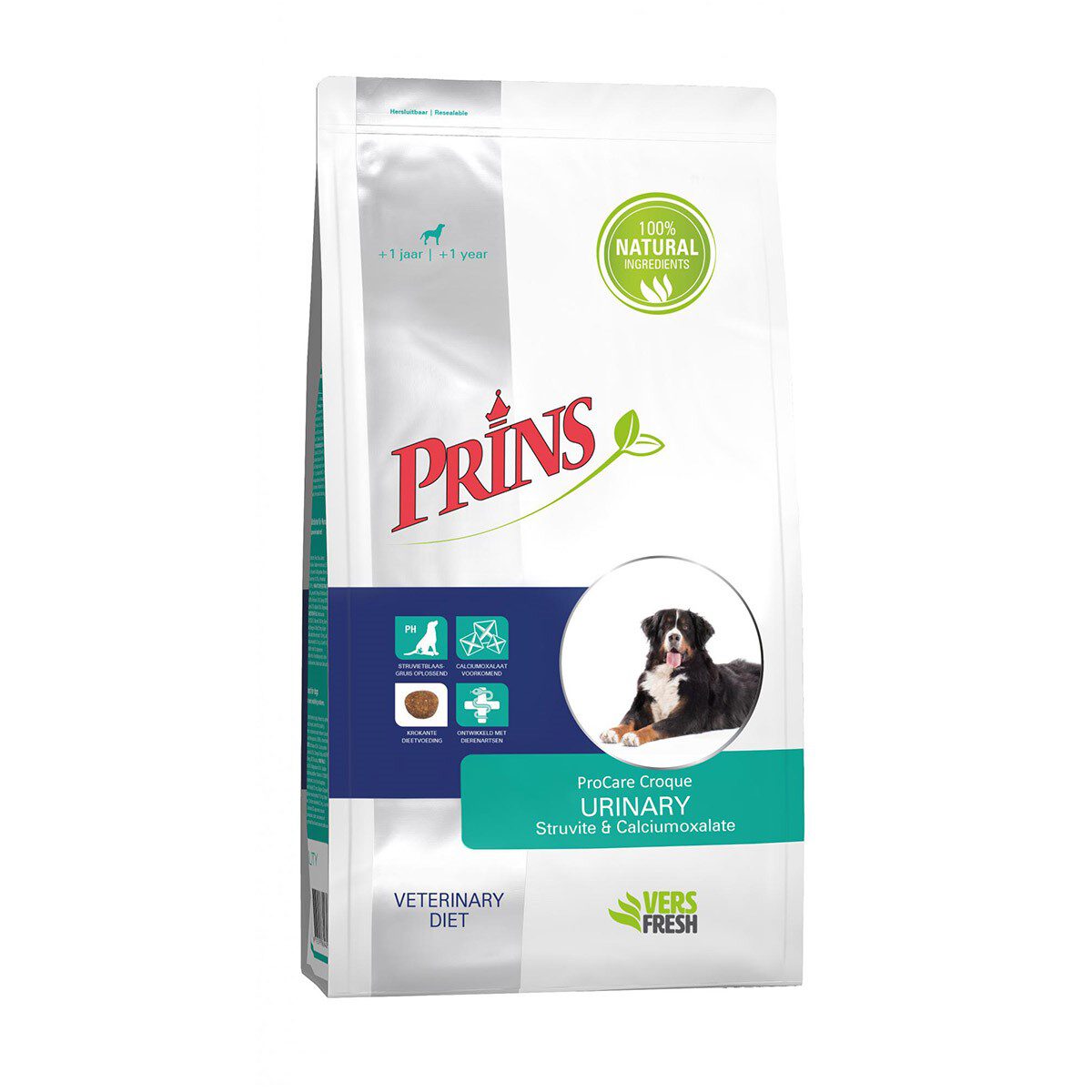 Prins ProCare Dieet Croque Urinary 10 kg. ProCare Croque Veterinary Diet Urinary is een krokante brokvoeding voor het oplossen van struvietblaasgruis bij volwassen honden en om herhaalde struviet- en calciumoxalaatblaasgruis te voorkomen. Deze voeding heeft een optimale samenstelling om struvietblaasgruis op te lossen, daarnaast bevat de voeding een aangepaste mineralenbalans om herhaling van blaasgruis te voorkomen. Cranberries dragen bij aan een gezond milieu in de blaas. Urinewegproblemen bij honden kunnen veroorzaakt worden door bacteriële infecties.