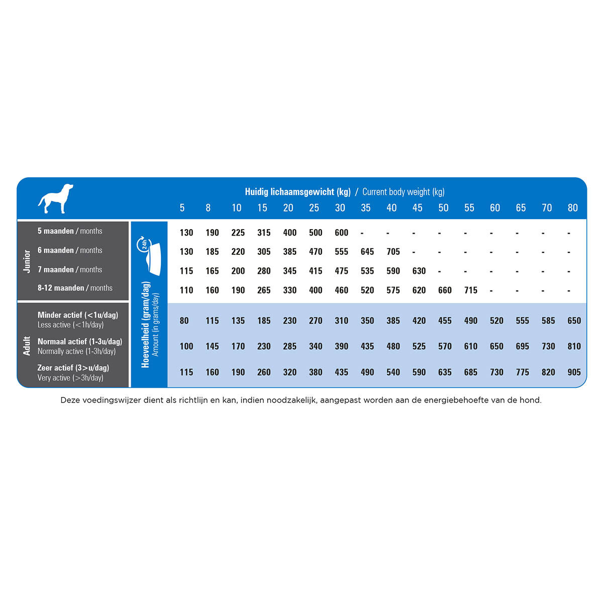 Prins ProCare Super Active kan droog gegeven worden. Bereiding is niet nodig. Zorg dat er altijd vers drinkwater op kamertemperatuur ter beschikking staat. Verdeel de dag portie ProCare Super Active over minimaal twee maaltijden per dag. Wil je jouw hond eens extra verwennen, bied dan één of meerdere dagen achtereen Prins TotalCare of Prins NatureCare aan. Dit zijn gezonde en natuurlijke vleesmaaltijden voor je hond. Overige bijvoeding wordt afgeraden. Meng gedurende minimaal 7 dagen steeds meer nieuwe voeding door de oude voeding tot u geheel bent overgestapt.