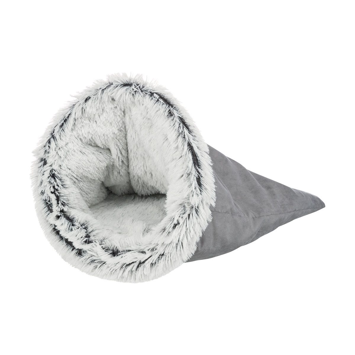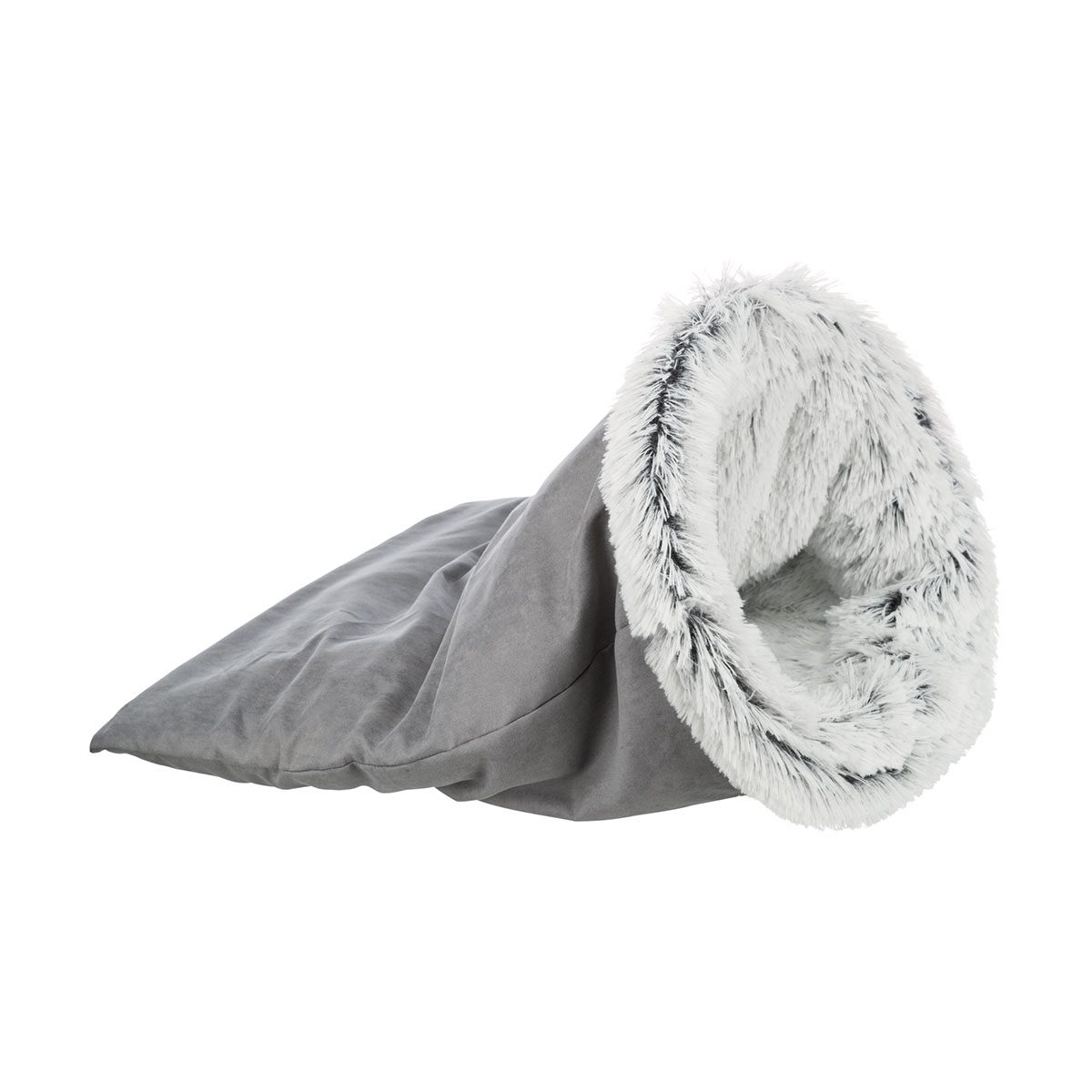 Heerlijk zachte en comfortabele slaapzak. Gevoerd met langhaar pluche. De vorm blijft goed in deze slaapzak vanwege een vormvaste metalen ring. De slaapzak is gemaakt van polyester bekleding en een polyestervlies vulling.