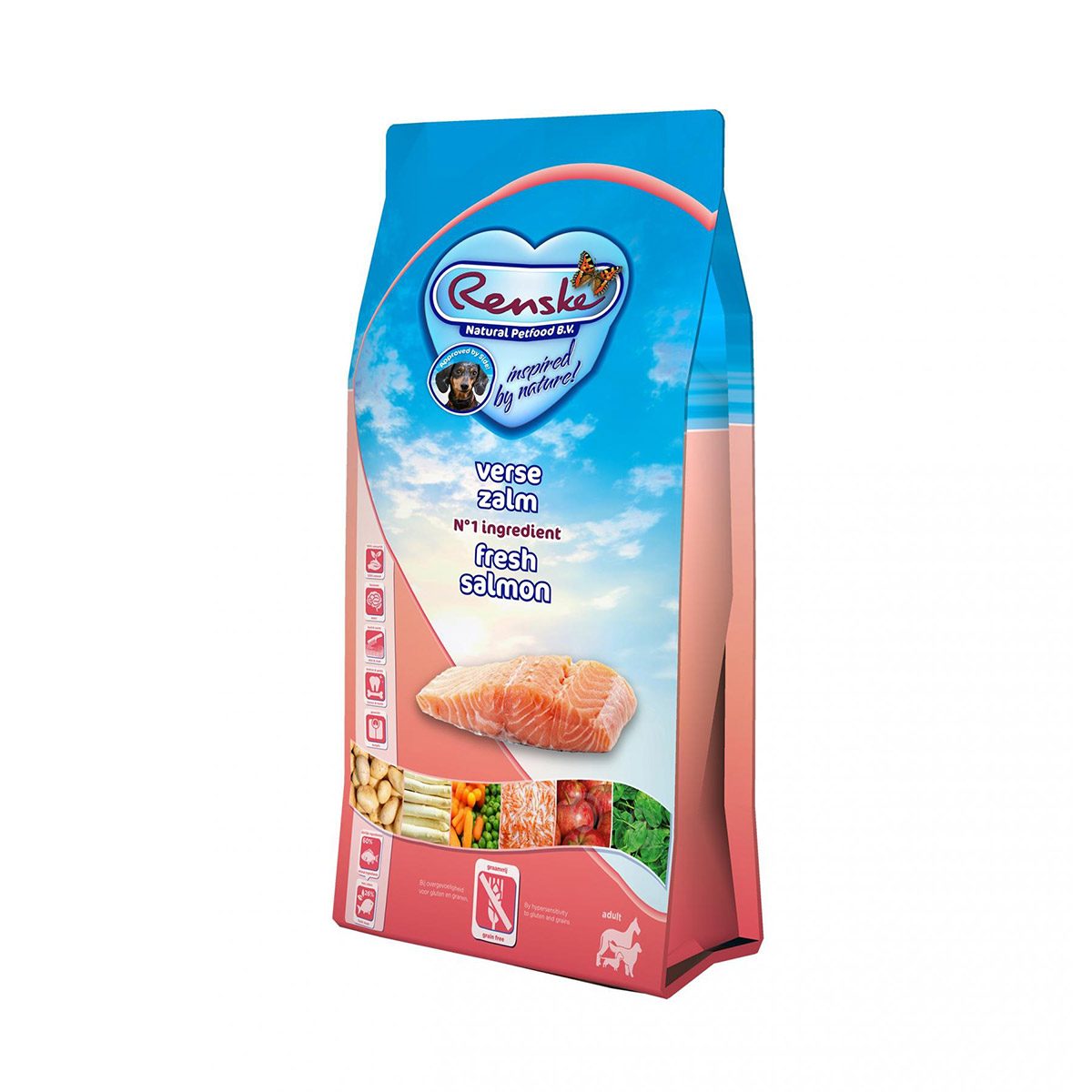 Renske Super Premium Graanvrij Verse Zalm is verkrijgbaar in verpakkingen van 600gr, 2kg en 12kg.