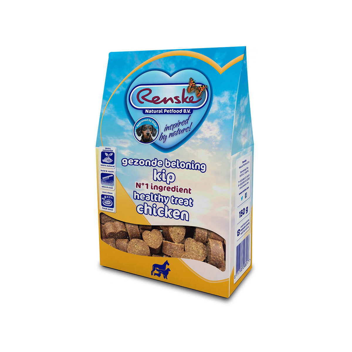 Renske Gezonde Beloning Hond Hartjes Kip 150 gr is een smakelijke, glutenvrije beloning voor de hond. Ideaal als verantwoord tussendoortje of trainingsbeloning!