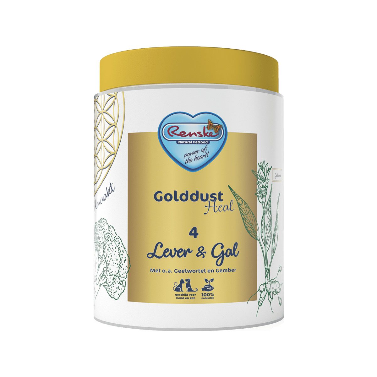 Golddust Heal – Lever & Gal bevat een overvloed aan natuurlijke aanwezige vitaminen, mineralen, aminozuren, essentiële vetzuren en vezels. Het is de rijkste bron aan omega-3 vetzuren en plantaardige lignanen. Met een toevoeging van de werkzame kruiden geelwortel, mariadistel, gember en broccoli. Golddust Heal is een 100% natuurlijke lijn voedingssupplementen speciaal voor honden en katten. De supplementen zijn allen ‘energetisch volmaakt’, wat betekent dat de ingrediënten zijn afgestemd op het energetische veld van jouw dier, waardoor het product beter zijn werk kan doen.