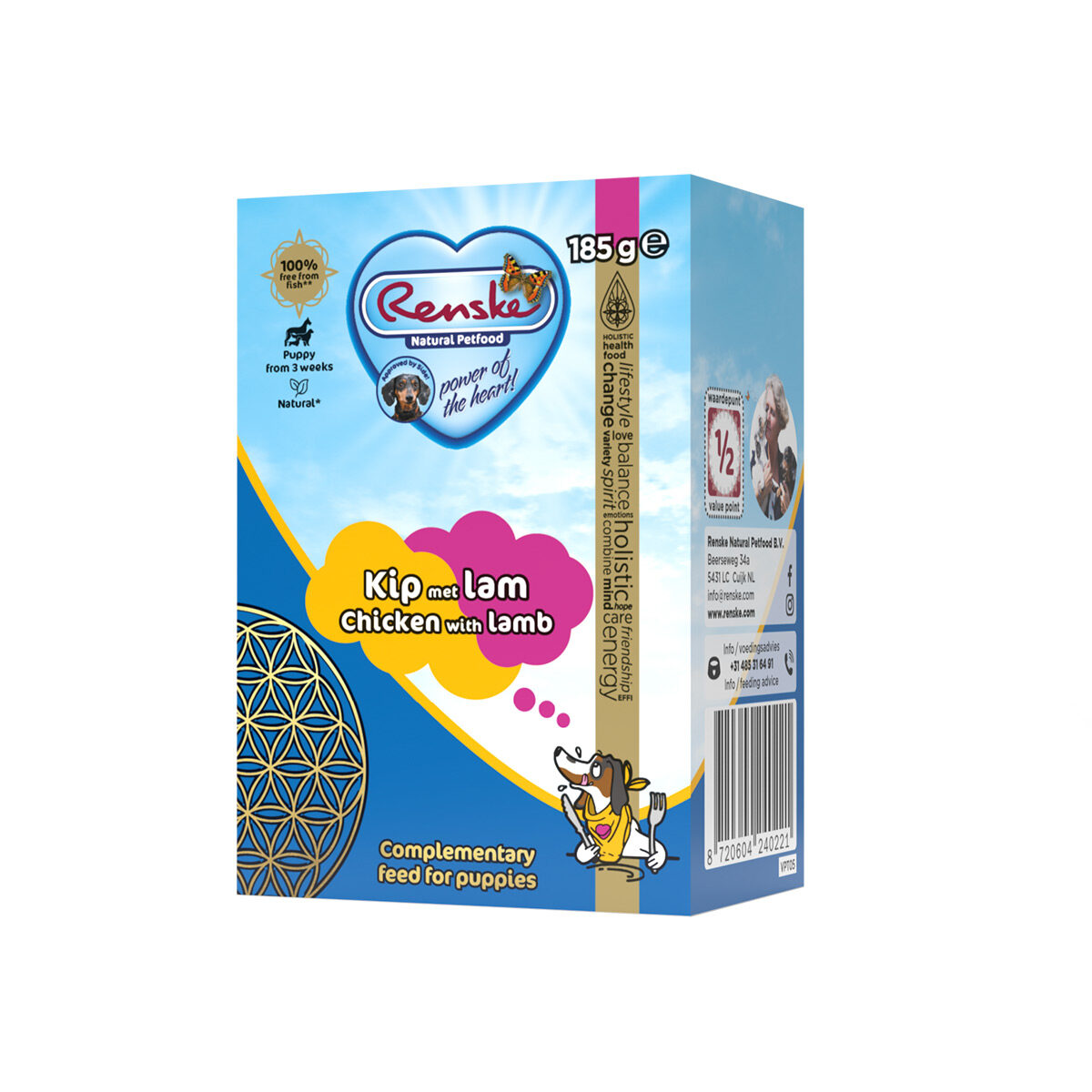 De vers bereide kipmaaltijd met lam van Renske is een complete puppyvoeding welke er speciaal voor de pup in de eerste weken is om te leren eten. Vanaf 9 weken mag de pup de andere varianten eten. De voeding bevat 70% vers bereide kip en lam. De vers bereide vleesvoeding is verrijkt met duindoorn, gedroogde algen en yucca schidigera en aangevuld met rijst en groenten waardoor je puppy nog meer zal smullen! De maaltijd is licht verteerbaar en erg geschikt voor puppy's die met moeite willen eten.