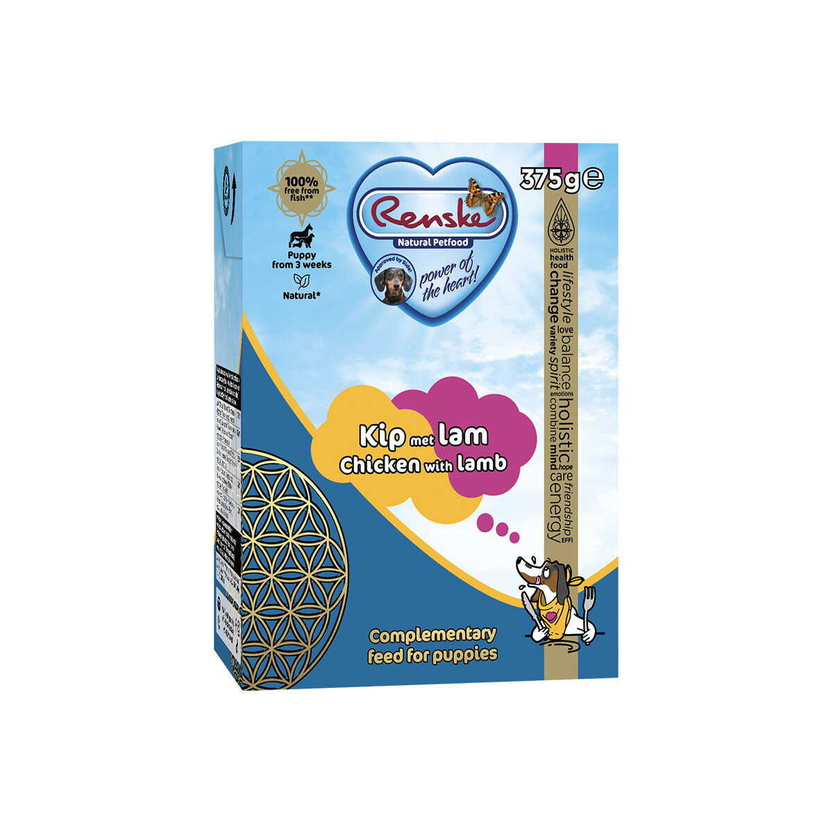De Verse Maaltijd Kip en Lam van Renske is een aanvullende en glutenvrije maaltijd voor pups vanaf 3 weken. De maaltijd bevat 70% aan vers bereide kip en lam, dit wordt aangevuld met rijst en heerlijke groenten. Deze maaltijd is speciaal voor de pup om te leren eten in de eerste weken, vanaf 9 weken mag de pup op de ‘adult varianten’ overstappen. De hoogwaardige ingrediënten maken de maaltijd licht verteerbaar en is daardoor ook geschikt voor moeilijke eters.