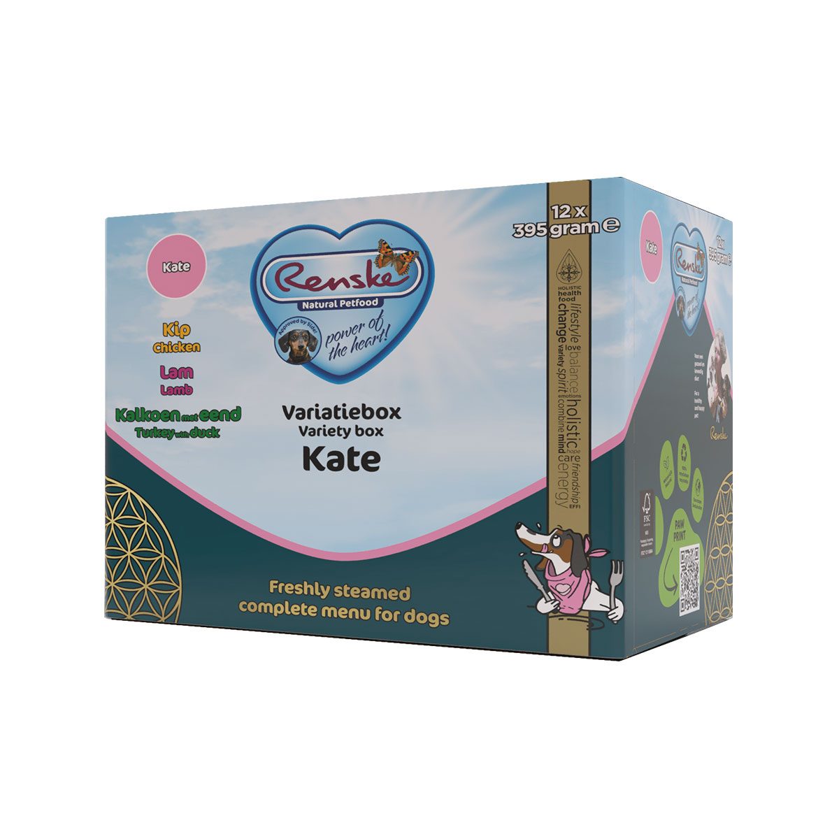 Renske Vers Hond Adult Multidoos Mix 12-Pack. De Renske Multidoos is een handige voordeelverpakking met drie heerlijke varianten Renske Vers! Met deze box kun je gemakkelijk afwisselen. De box bevat 4x verse kip, 4x verse lam en 4x verse kalkoen en eend. De voordelen van Renske Vers Hond Adult Multidoos Mix 12-Pack zijn:
