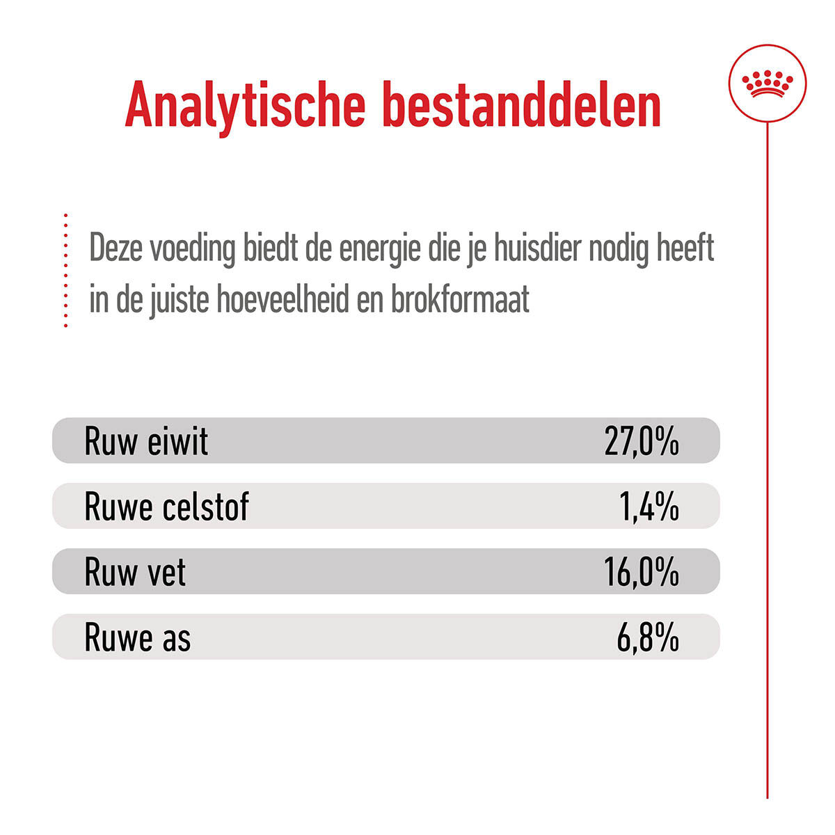 ROYAL CANIN® Mini Adult is samengesteld met de voedingsbehoeften van honden vanaf een leeftijd van 10 maanden en een lichaamsGewicht: van maximaal 10 kilogram in het achterhoofd.