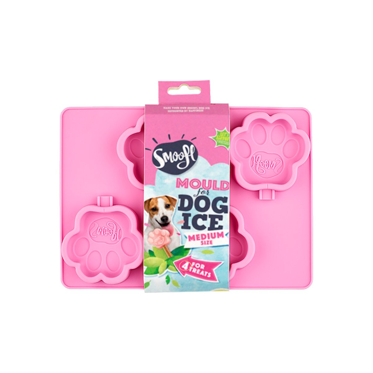 Maak zelf heerlijke verfrissende Smoofl hondenijsjes met deze handige ijsvorm in de vorm van een pootafdruk! Trakteer je viervoeter op warme dagen op een heerlijk hondenijsje van Smoofl ijsmix voor honden.