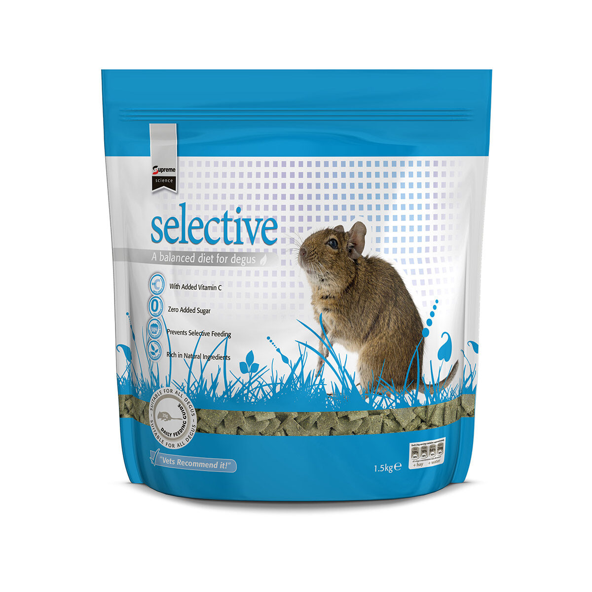 Deze zorgvuldig en wetenschappelijk gekozen mix van hoogwaardig ingrediënten bootsen het natuurlijke dieet van een degoe na. Hun voeding vereist een zeer laag vetgehalte.