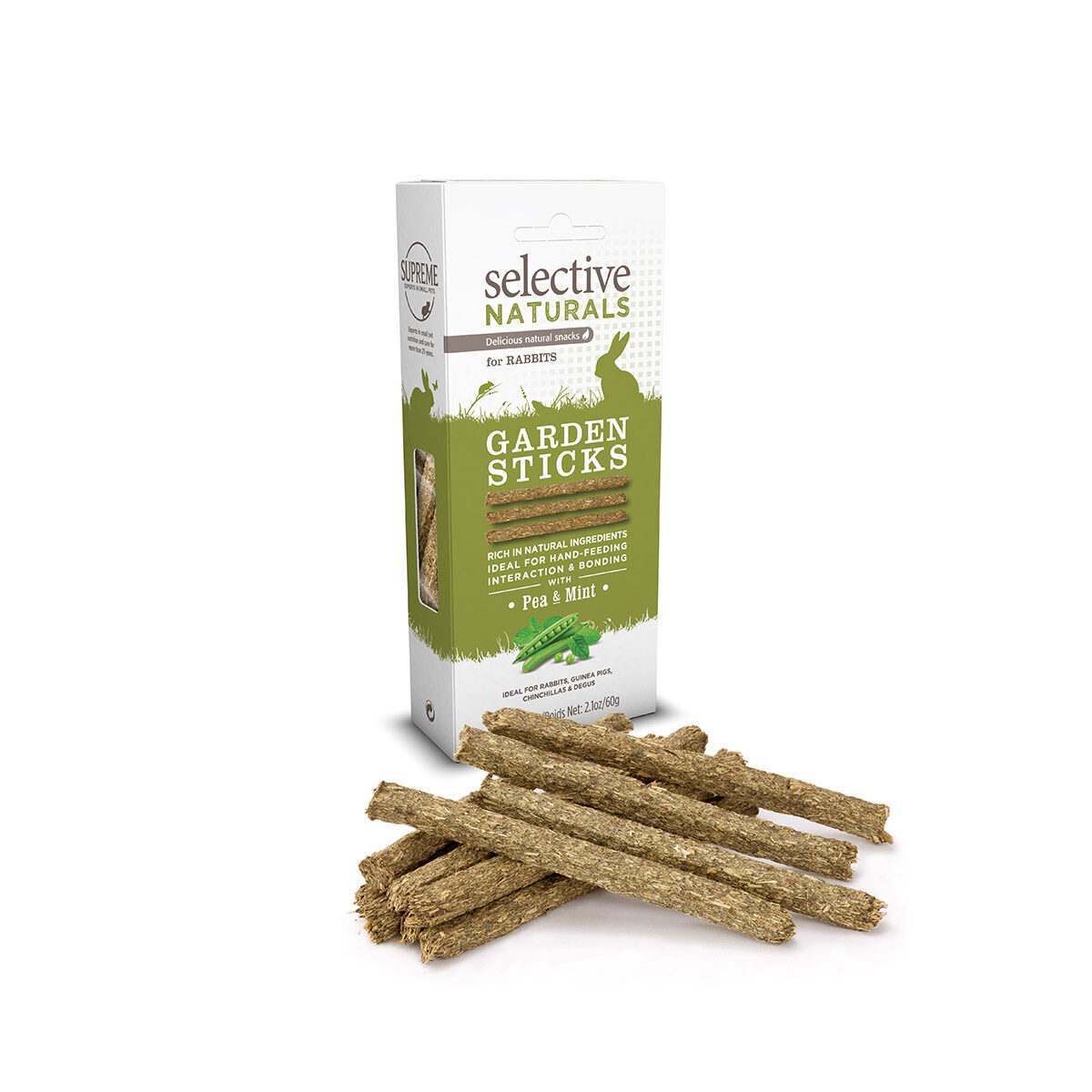 Supreme Selective Garden Stick 60gr zijn smakelijke snacksticks met kamille en bramen voor je cavia, konijn, chinchilla of degoe. De traktaties zijn rijk aan natuurlijke ingrediënten, zonder toegevoegde suikers, zonder kunstmatige kleurstoffen en ideaal om met de hand te geven.