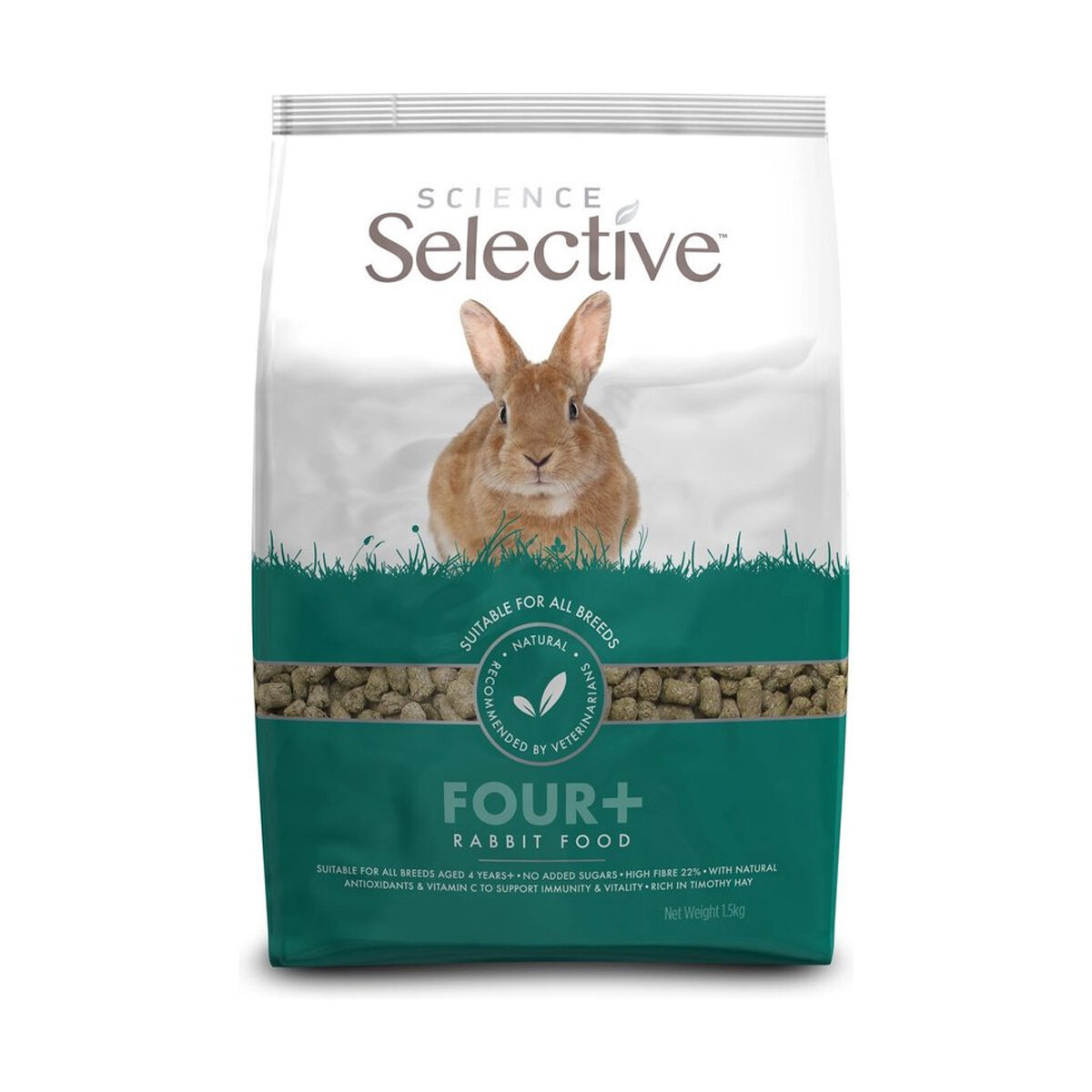 Supreme Selective Konijn 4+ is een diervoeding met timothy hooi & tijm – Ontwikkeld voor de veranderende voedingsbehoefte van konijnen ouder dan 4 jaar.