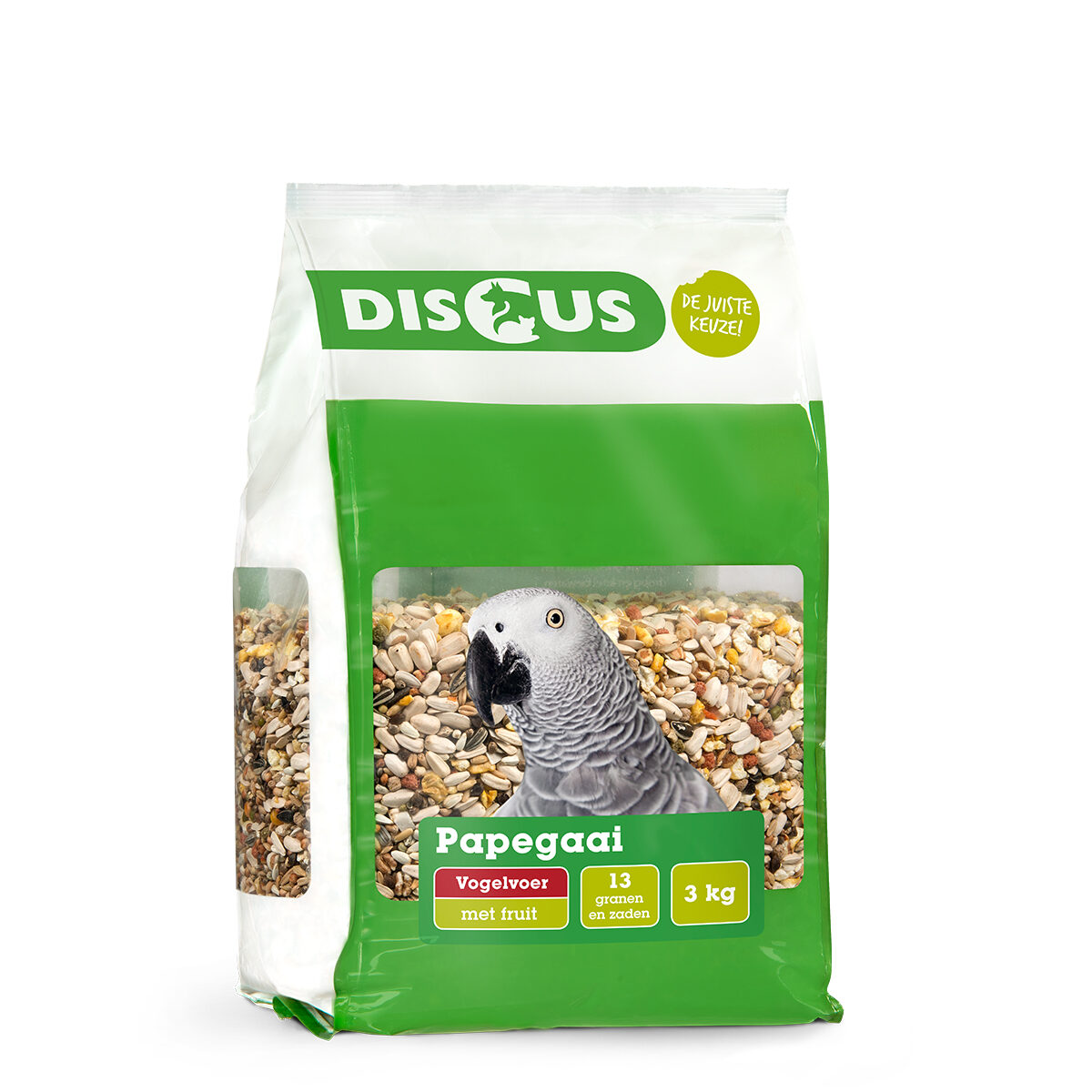 In het Discus assortiment vind je vogelvoer dat volledig is afgestemd op de behoefte van papagaaien. De diverse typen voeding zijn compleet, evenwichtig en gezond. Jouw papegaai zal het voer als zeer smaakvol ervaren! Het voer kan o.a. bestaan uit zaden, granen, vruchten en noten die een papegaai nodig heeft om in conditie te blijven en zijn mooie verenpracht te behouden.