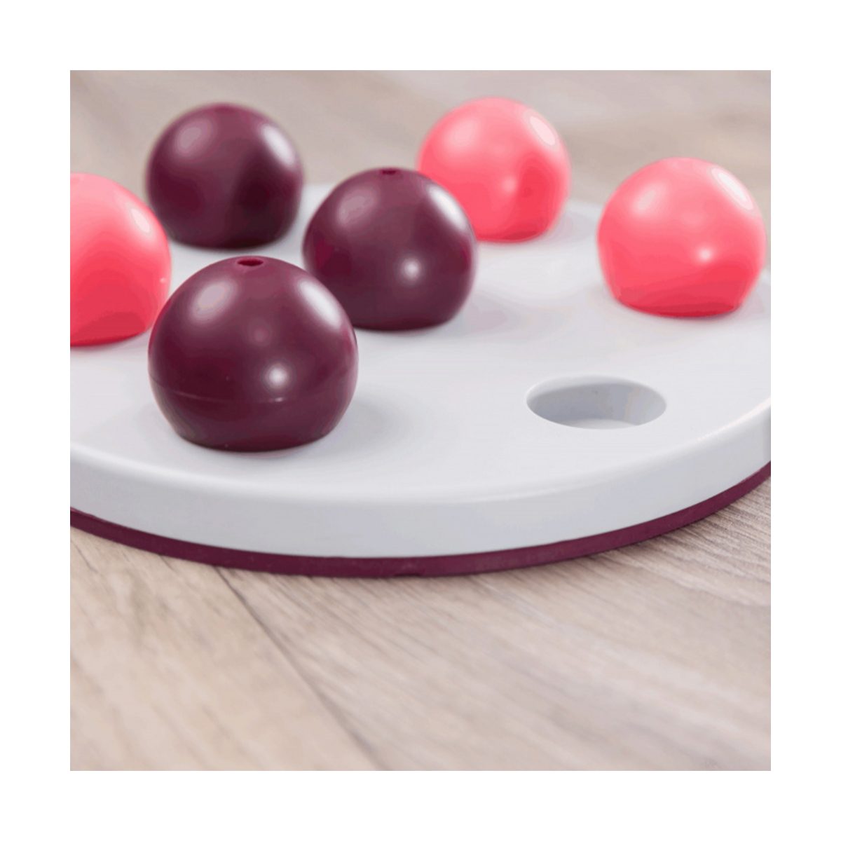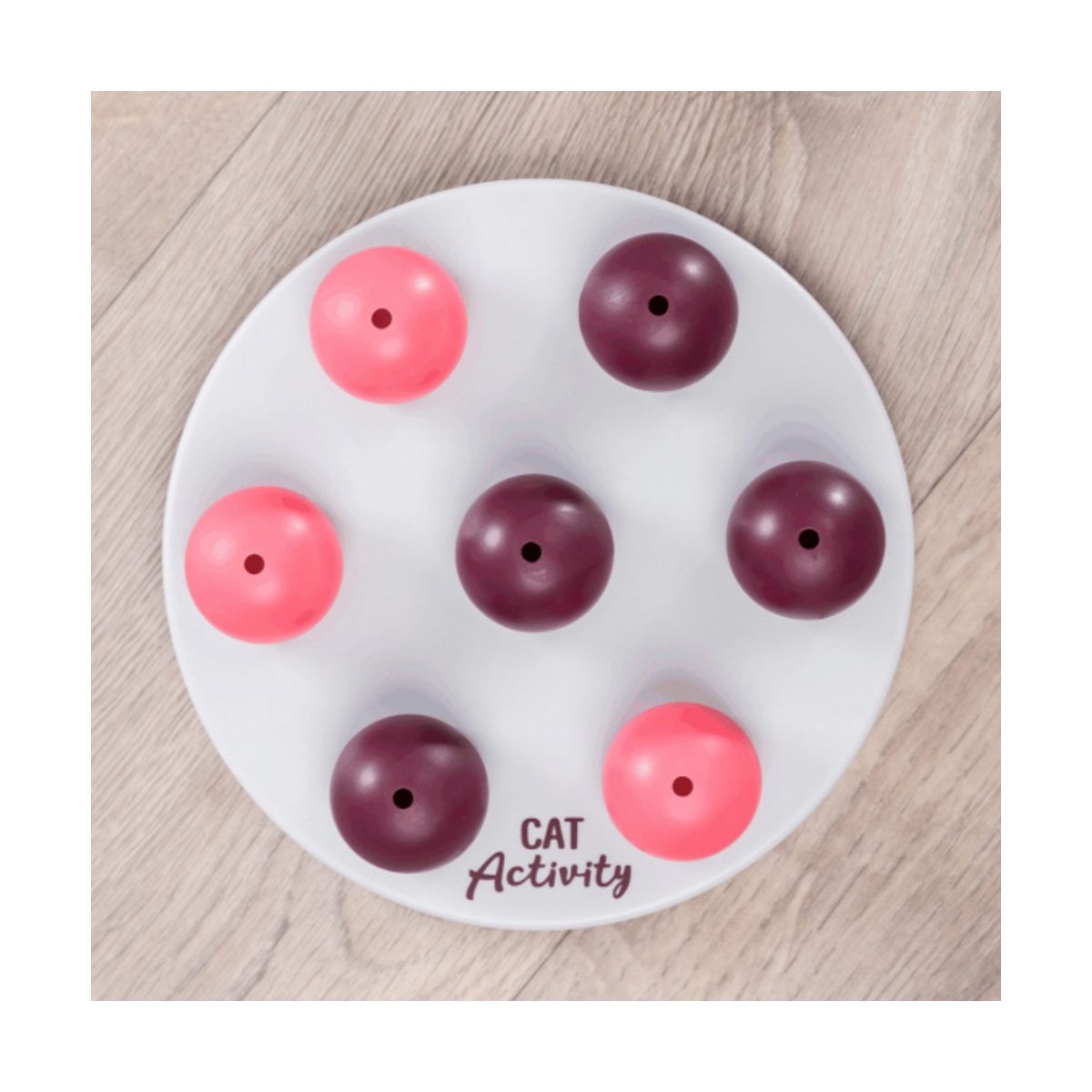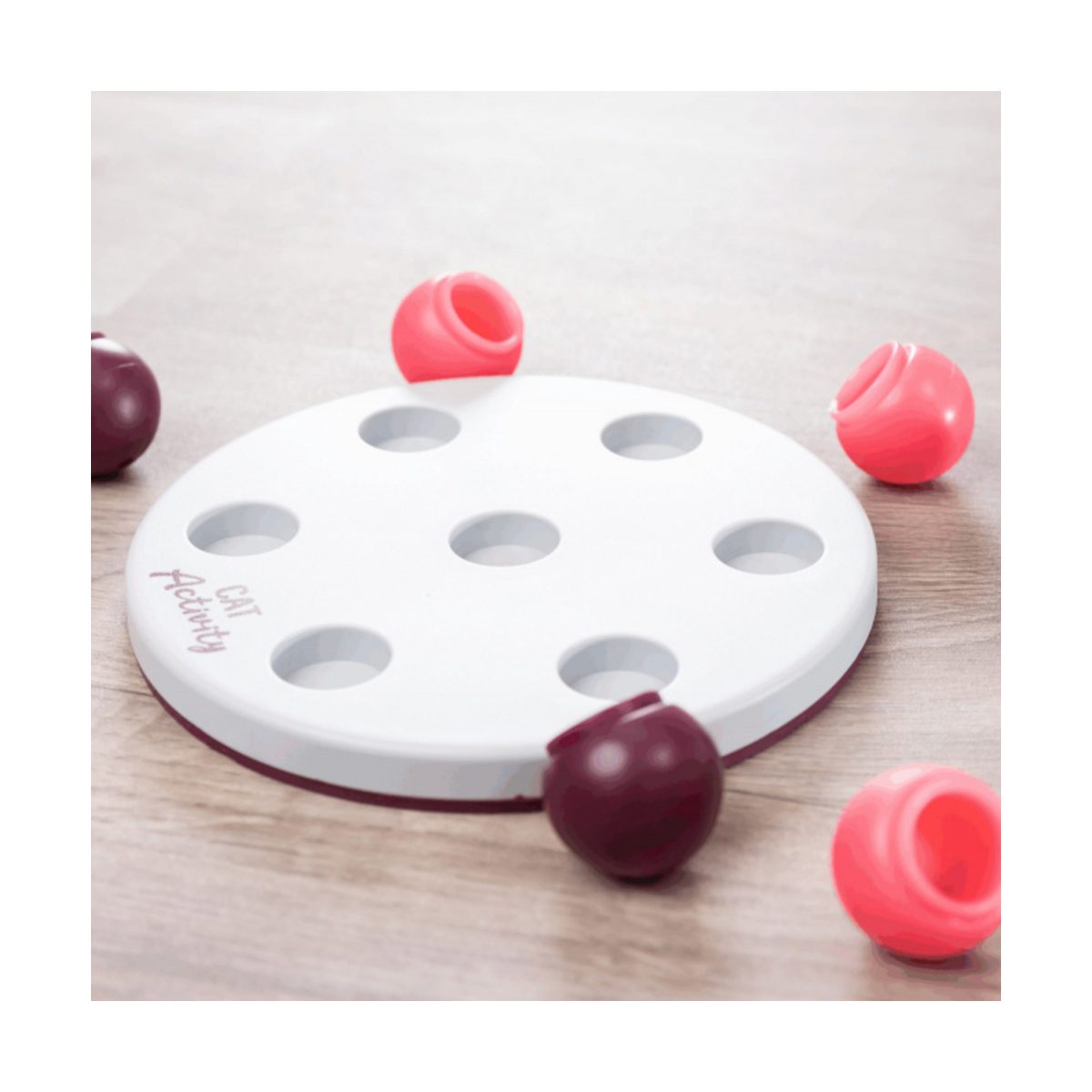 Trixie Cat Activity Solitaire Strategiespel voor Katten 20 cm. Een uitdagend voerspelletje voor katten. Je kunt een aantal snacks verstoppen onder de zeven bolletjes. Je kat zal proberen om bij de snacks te komen door deze bolletjes met zijn poten of neus weg te duwen. Dit zorgt voor veel denkwerk en veel speelplezier. Jouw kat zal zich hierdoor niet snel vervelen. Dankzij de antislip onderkant glijdt dit spel niet weg tijdens het spelen.