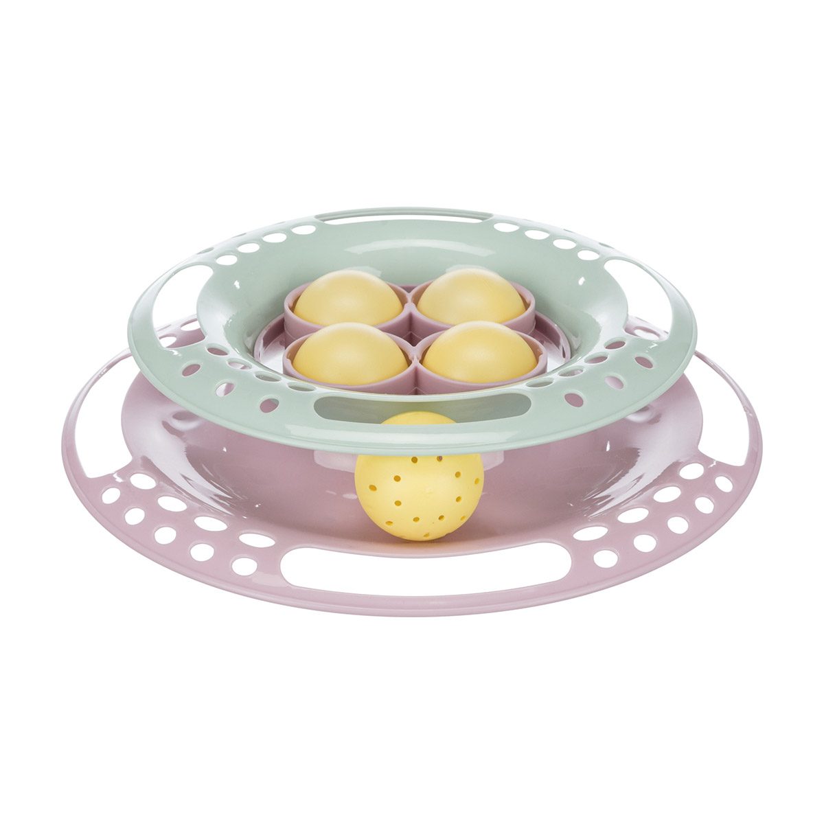 De Trixie Junior Kitten Circle van 24 x 24 cm is leuk kattenspeelgoed met beweegbare balletjes die rondom een baan doorlopen. Ideaal om jouw kat of kitten lekker actief bezig te houden! De bal kan heen en weer bewogen worden door de rails en zal zo het jachtinstinct van jouw kat aanwakkeren. Gemaakt van kunststof en voorzien van vier extra ballen.- Leuk speelgoed voor kittens en katten- Ronde baan waarin een balletje heen en weer bewogen kan worden- Met vier extra balletjes, in houder bovenop te plaatsen- Gemaakt van kunststof- In schattige pastelkleurtjesAfmetingen: 24 x 24 cm