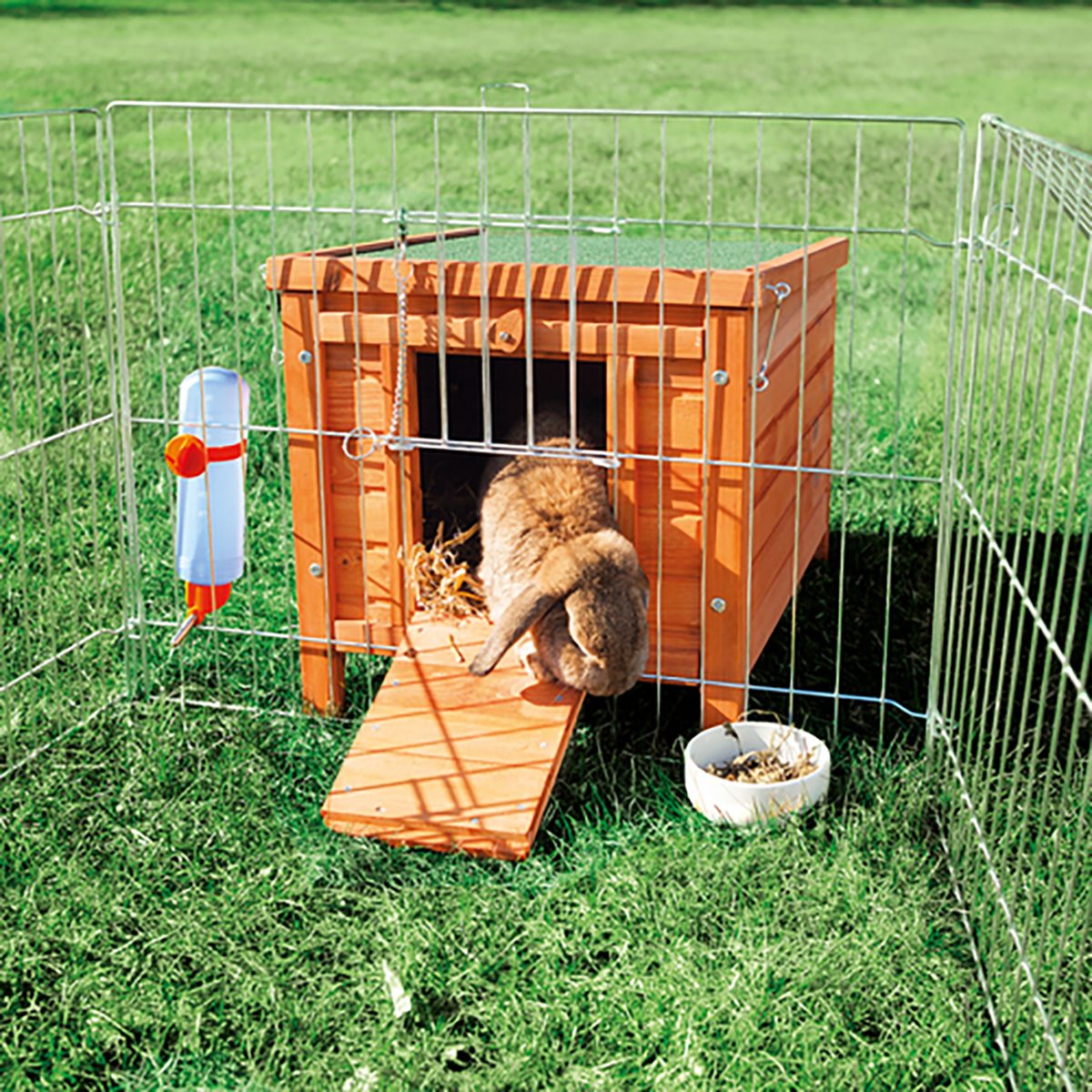 Dit grote Trixie konijnenhok is vooral geschikt voor in de tuin. Het huisje heeft een deurklep die afgesloten kan worden. De hoge voetjes beschermen tegen vocht en kou en zorgen voor een goede ventilatie onder het huisje. Het dak kan van boven geopend worden. De speciale laag op het dak en het gebeitste dennenhout zijn winter- en watervast. Het huisje wordt als bouwpakket bezorgt, de montage is snel en makkelijk.