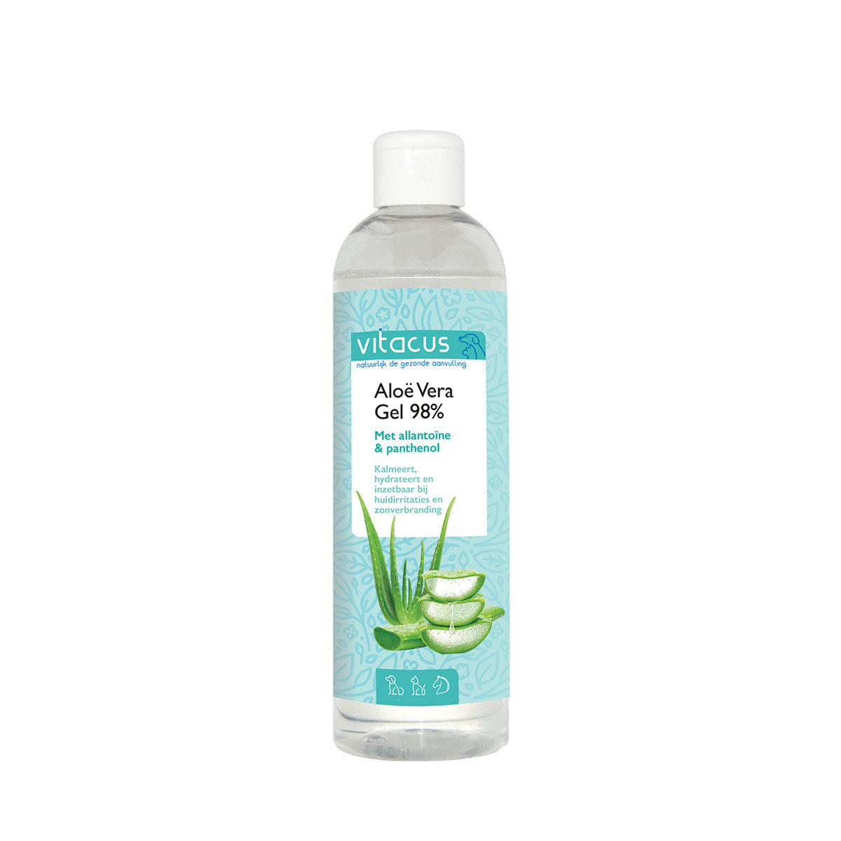 Aloë Vera Gel bestaat voor 98% uit puur Aloë Vera-concentraat, verrijkt met allantoïne en panthenol. Deze combinatie ondersteunt de groei van nieuwe huidcellen en zorgt voor een zachte huid. De gel is ideaal voor het kalmeren en hydrateren van de huid na zonverbranding, insectenbeten, jeuk of andere huidirritaties. Daarnaast werkt de gel verkoelend op een schrale, kwetsbare of gevoelige dierenhuid. Ook bij verschillende huidaandoeningen, zoals kloven of rode plekken, heeft Aloë Vera Gel een zeer positieve invloed. Bovendien is het een uitstekende verzorging bij zonverbranding op de huid bij dieren.