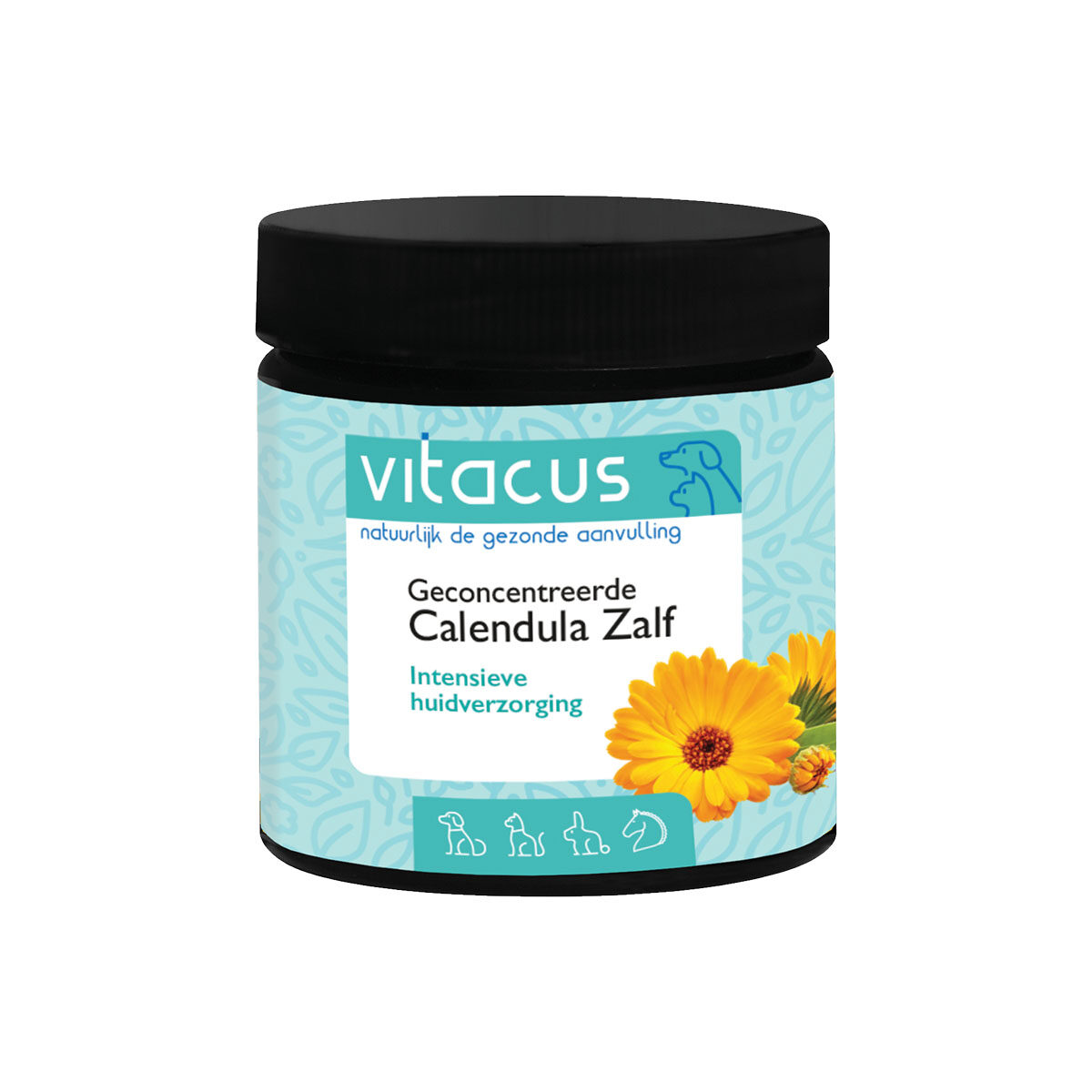 Geconcentreerde Calendula Zalf is een perfect EHBO-middel voor je huisdier om in huis te hebben. Het ondersteunt het herstellend vermogen van de huid waardoor littekens, striemen, en een ruwe of geprikkelde huid tegengegaan worden. Zelfs bij een rode, droge en gevoelige huid geeft het bijzonder goed resultaat. Daarnaast kan de zalf ook gebruikt worden bij insectenbeten. De zalf is geschikt voor honden, katten, konijnen, knaagdieren en paarden.
