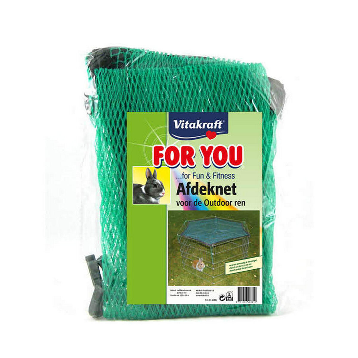 Vitakraft afdeknet voor Vitakraft Outdoorrren Verzinkt 125x60cm. Dit afdeknet van Vitakraft zorgt voor een optimale bescherming van jouw knager tegen katten en roofvogels. Dit net voorkomt eveneens dat jouw konijn of knaagdier uit de ren kan springen. Ondanks dat het afdeknet ook beschermt tegen de zon, adviseren wij toch om de ren op een schaduwrijke plek te zetten. Zo laat je jouw knagers optimaal genieten van het buitenleven! Dit afdenknet is eenvoudig te bevestigen op de Vitakraft Outdoorren van 60x63 cm.