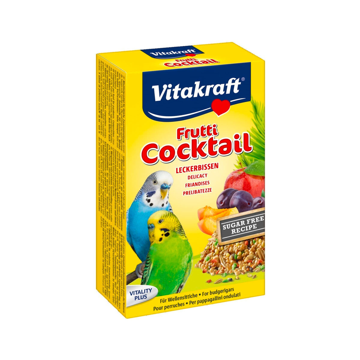 Frutti Cocktail Parkiet van Vitakraft is een heerlijke traktaties voor parkieten. Deze mix van Vitakraft is rijk aan waardevolle vitamines en voedingsstoffen. De Frutti Cocktail voegt variatie toe aan de dagelijkse voeding en is een perfecte aanvulling. De knabbelmix van Vitakraft bestaat uit heerlijke vruchten, waaronder appel, pruim en abrikoos. De vruchten zijn aangevuld met granen en zongerijpte zaden, welke een gezonde energiebron zijn.