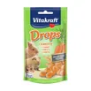 Vitakraft Drops Knaagdier en Konijn Wortel 75gr zijn heerlijke en gezonde snoepjes voor konijnen en knaagdieren met wortel. De snoepjes zijn lactosevrij en daardoor goed verteerbaar. Ze zijn zeer geschikt als tussendoortje en ook ideaal als beloning. De Drops zijn geheel suikervrij en bevatten geen kunstmatige kleurstoffen, smaakversterkers en conserveringsmiddelen. De Vitakraft Drops Knaagdier en Konijn zijn geheel suikervrij en bevatten geen kunstmatige kleurstoffen, smaakversterkers en conserveringsmiddelen. Om de versheid te verlengen van deze snoepjes, is het zakje voorzien van hersluitbare sluiting. De Drops zijn dankzij de portiegrootte ideaal voor konijnen en knaagdieren.