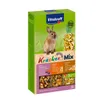 De originele Vitakraft Kräcker Trio-Mix Konijn 3-in-1 Bosbessen-Honing-Popcorn is een verantwoorde lekkernij, 3 verschillende smaken Kräckers in de mix met lekkere bosbessen, honing en popcorn op een natuurlijk knabbelhoutje. De Kräckers zijn lekker van smaak en 3-voudig gebakken waardoor de ingrediënten stevig vastzitten en het konijn bezig wordt gehouden zoals dit in de vrije natuur ook gebeurt. Dit geeft het konijn de nodige beweging en zorgt ervoor dat hij zijn snijtanden op natuurlijke wijze kan afslijten. De Vitakraft Kräckers Trio-Mix Konijn 3-in-1 zijn afgestemd op de voedingsbehoefte van het konijn. Het Vital-Complex voorkomt gebreksverschijnselen en zorgt voor extra vitaliteit van het dier. Met waardevolle vitamines, extra vitamine C en bereid volgens een suikervrije receptuur.