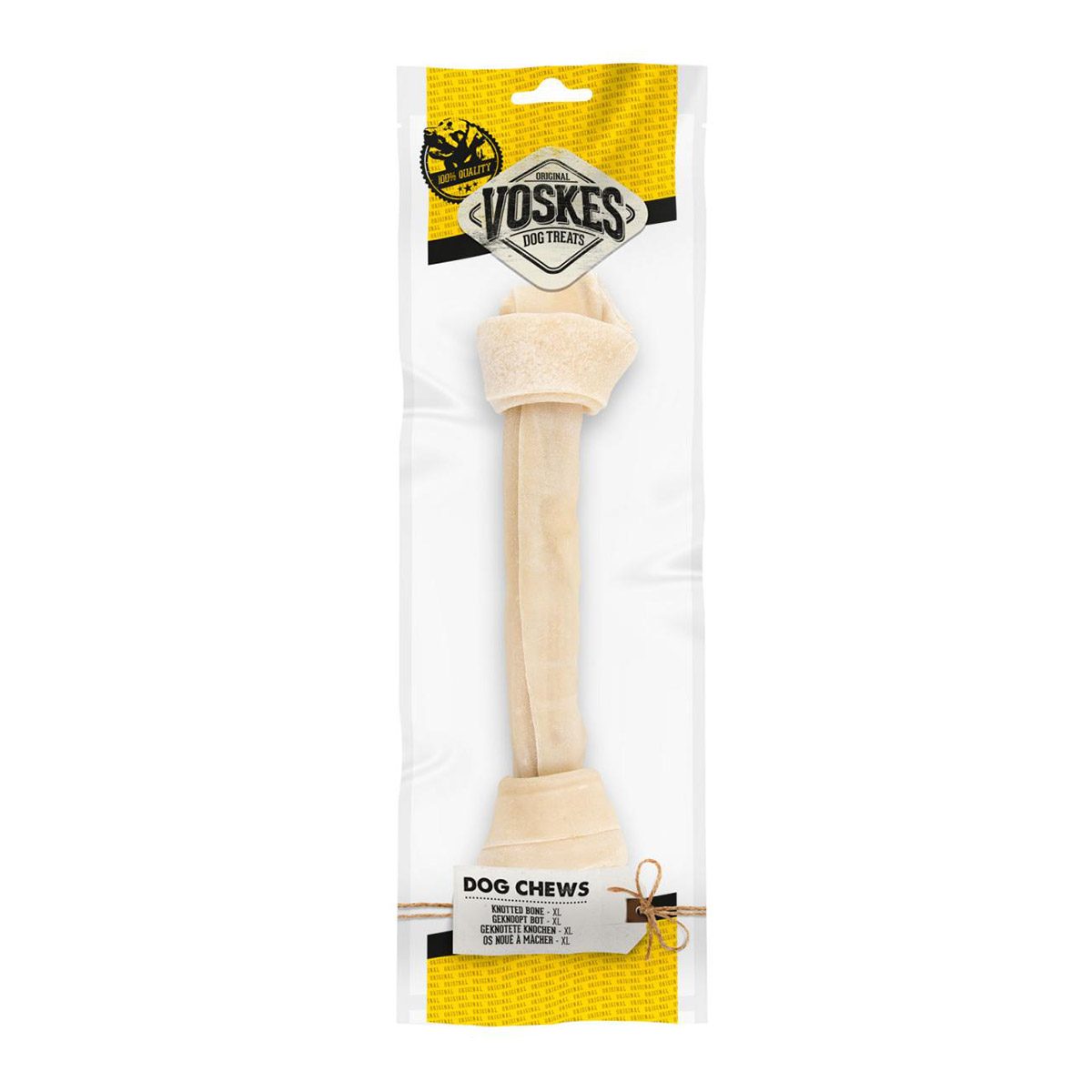 Voskes Geknoopt Bot XL is een smakelijk bot gemaakt van gedroogd runderhuid. Honden houden ervan om op de gedroogde huid te kauwen en het helpt oop om het gebit schoon te houden. Voskes Geknoopt Bot is niet alleen een lekkernij, maar ook een middel om het gebit van je hond schoon te houden.