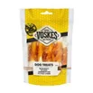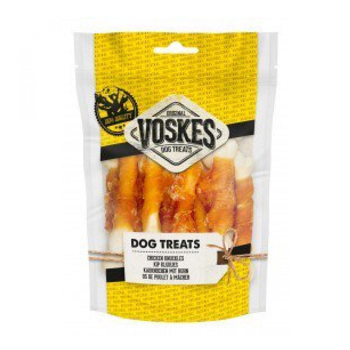 Voskes Kip Kluifjes gemaakt van gedroogde runderhuid omwikkeld met de Voskes kipfilet. Je hond zal ervan genieten wanneer hij de kipfilet eraf kluift en vervolgens op het gedroogde runderhuid kan kauwen. Het kauwen op de runderhuid van de Voskes Kip Kluifjes zal bijdragen aan de gezondheid van het gebit van je hond.