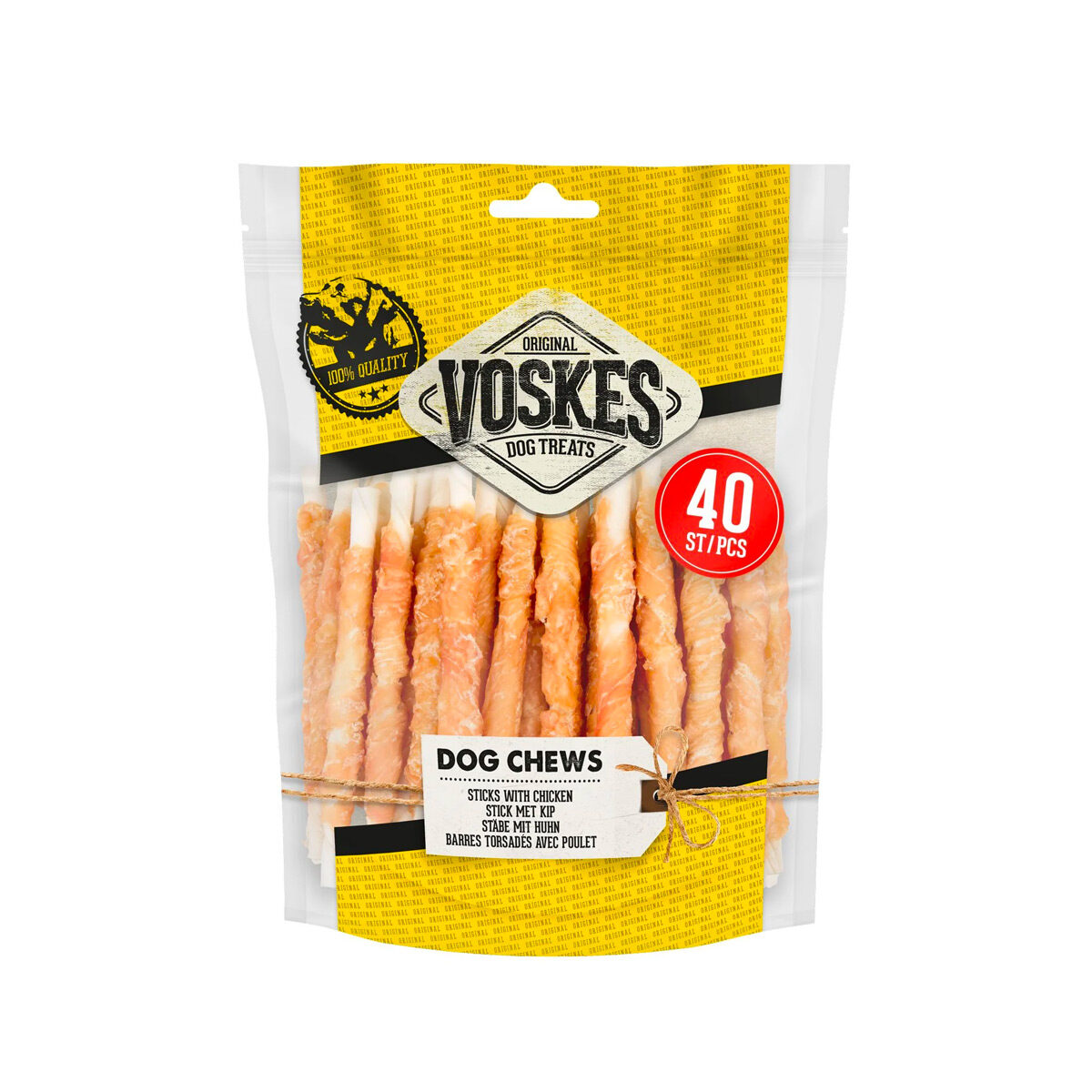 De Voskes Kip Twist Kauwsticks zijn heerlijke hondensnacks bestaande uit runderhuid en kip. De voordeelverpakking bevat 40 smaakvolle sticks die het kauwgedrag van jouw hond stimuleren.