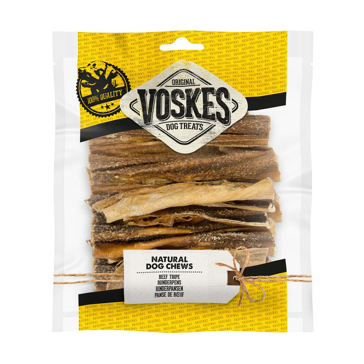 Voskes Runderpens is natuurlijke, gedroogde runderpens zonder toevoegingen. Deze overheerlijke snack stimuleert het kauwen en draagt bij aan een gezond gebit. De Voskes Runderpens is een ideaal tussendoortje voor de hond die van kauwen houdt!