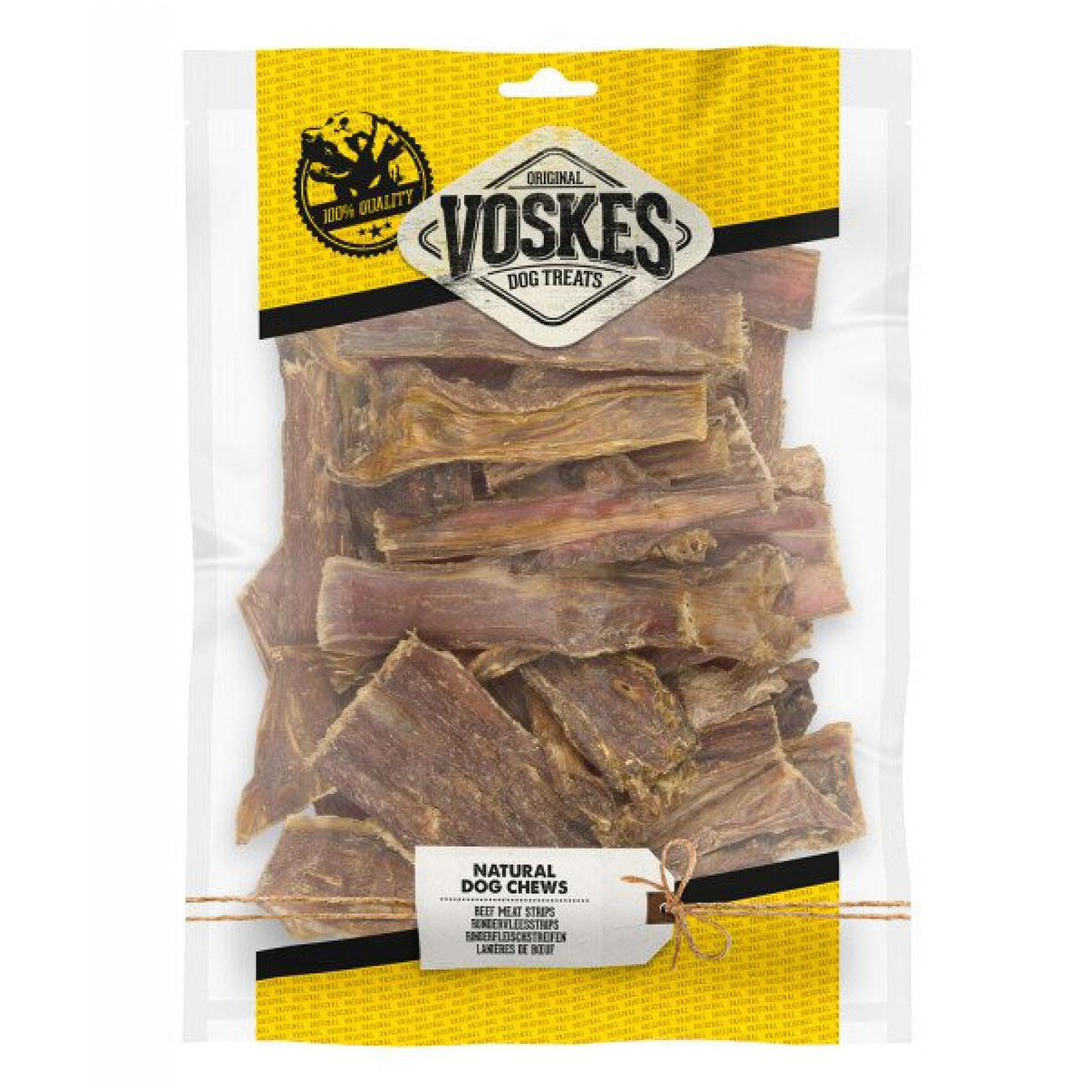 Voskes runderstrips zijn gedroogde rundvleesreepjes. Dit product van Voskes is een natuurlijk kauwproduct zonder toevoegingen. Voskes Runderstrips stimuleert het kauwgedrag van je hond en draagt bij aan een gezond gebit. Ideaal om als tussendoortje te geven.